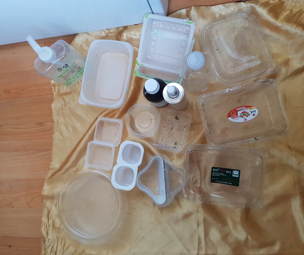 플라스틱 칸을 뒤지다가