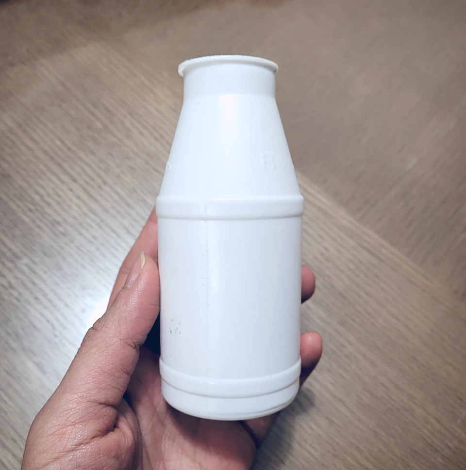 불가리스통에 붙은 비닐을 열심히 뗐다.