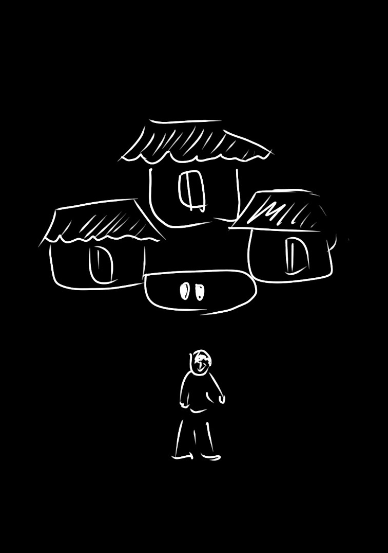 루머가 머루의 손안에 조각칼을 쥐어준다. 머루는 흐르는 눈물을 닦아가며 조각칼로 스님이 써 준 글자를 새겨본다. 나무의 결이 단단한 탓인지 조각칼이 쉽게 들어가지 않는다. 스님과 그녀는 옆에서 우리가 하는 행동을 지켜만 본다. 안양에서 봤던 그녀의 눈빛과는 다른 모습이 풍긴다. 조심스럽게 그녀가 스님에게 말을 건넨다.