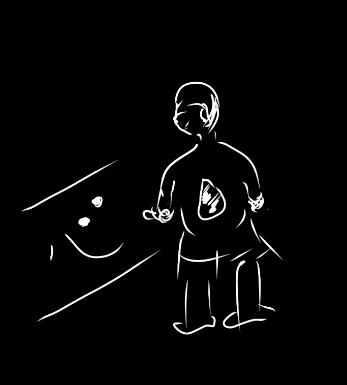 머루가 흐르던 눈물을 손으로 닦은 후 스님을 바라본다. 스님이 다친 머루의 한쪽 눈을 바라보며 고개를 숙인다. 머루는 잠시 스님을 바라보다 또 눈물이 나는지 한 손으로 눈을 비빈다. 옆에서 지켜보던 그녀가 머루에게 휴지를 건넨다. 루머는 한 손으로 머루의 손등을 잡아준다. 고요한 방안에 침묵과 함께 복잡한 서로의 감정이 흔들리는 촛불 사이로 한 올 한 올 깊어만 간다. 잠시 후, 스님이 마음을 가다듬고 머루의 손을 잡아주며 등에 대고 토닥토닥 위로의 몸짓을 전한다. 옆에서 바라만 보고 있던 그녀의 눈빛에도 어느새 눈물방울들이 맺혀 간다. 스님은 마음을 정제하고 평정심을 잃지 않으려는 듯 허리를 꼿꼿이 세우고 준비한 합판 위에 하얀색 분필로 마음 심자를 한자로 쓴다.