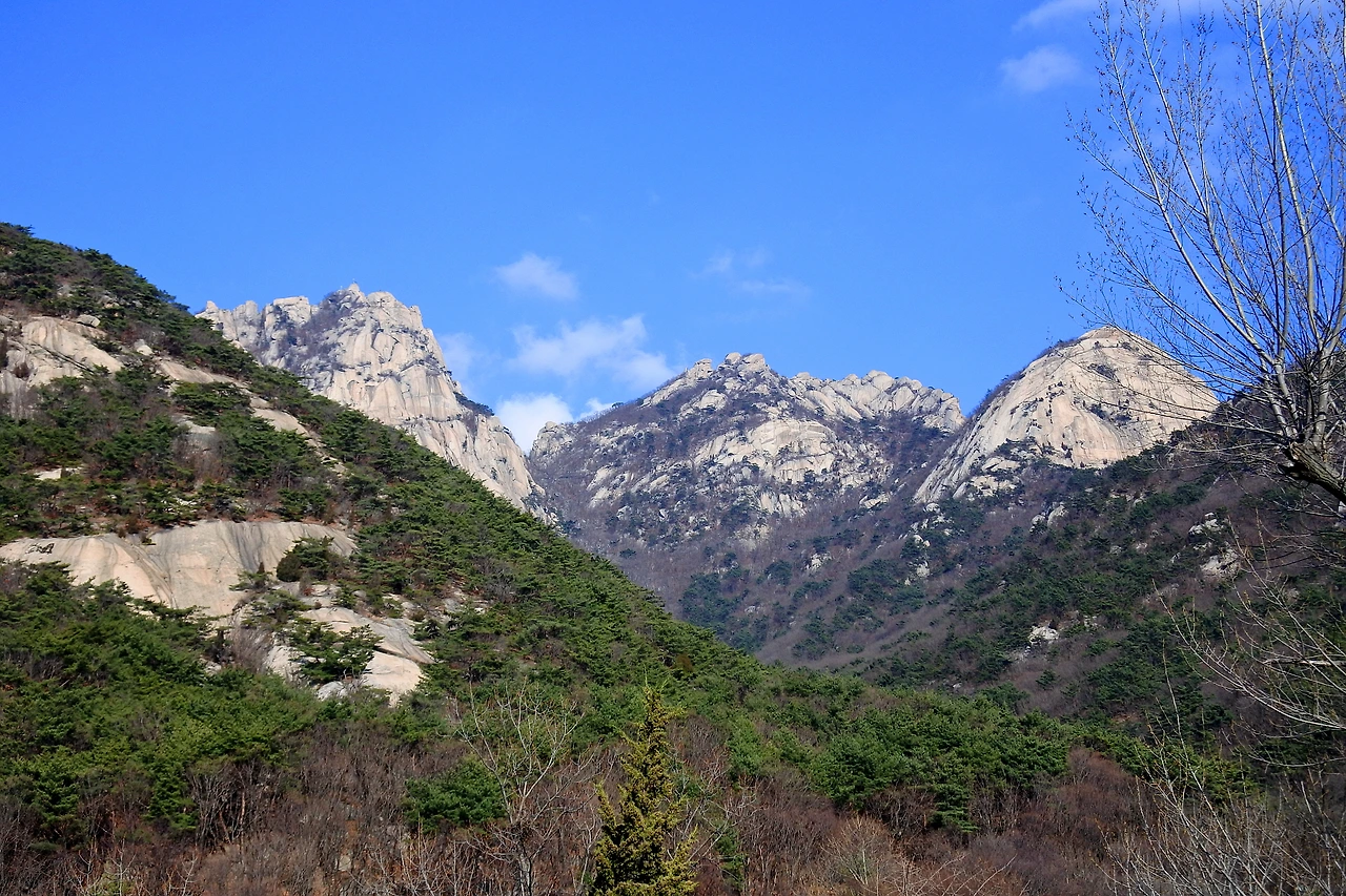 * 북한산: 원효봉쪽에서 바라본 북한산의 고봉들.