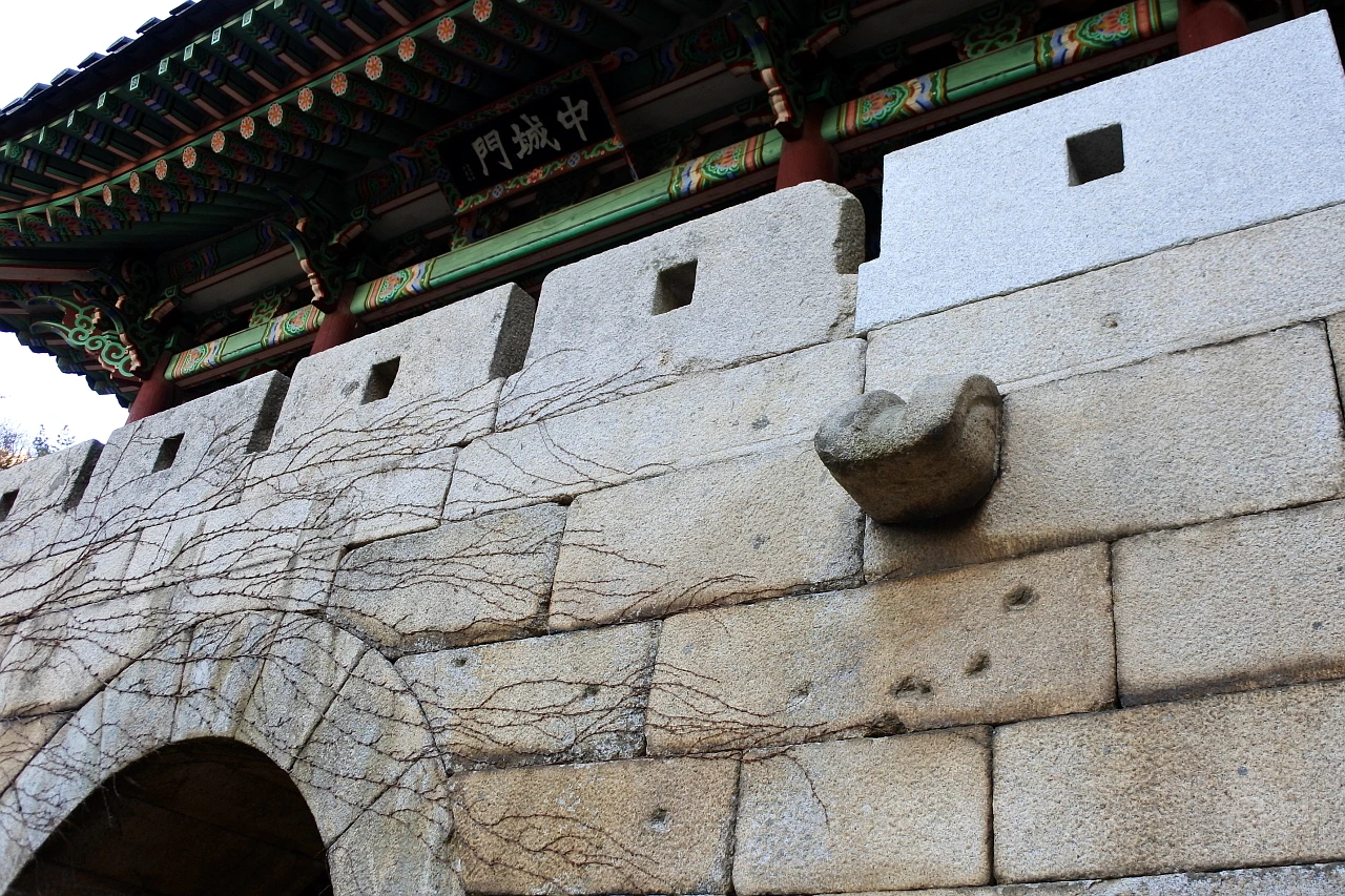 반대의 경우도 있지 않은가? 지형이 너무 평탄하여 적들의 공격으로 취약한 곳도 있을 것이다. 그곳이 바로 북한산성의 서쪽 구간이다. 그래서 이곳은 중성문을 쌓아 이중 방어 구조를 만들었다. 즉, 대서문 -> 중성문 식이 된다.
