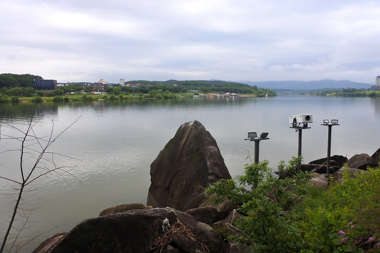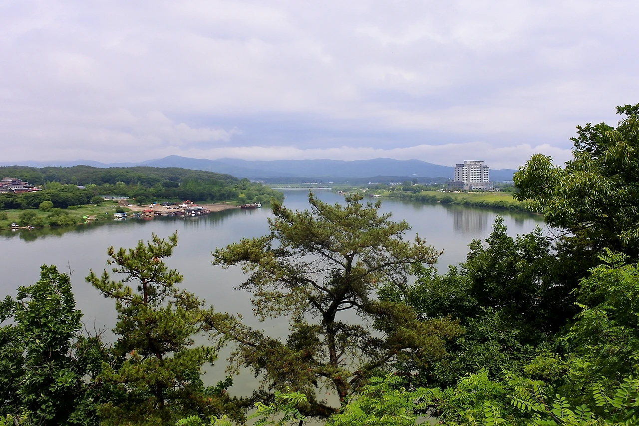 * 남한강: 마암 일대에서 바라본 모습. 강 건너편이 신륵사 관광지구다.
