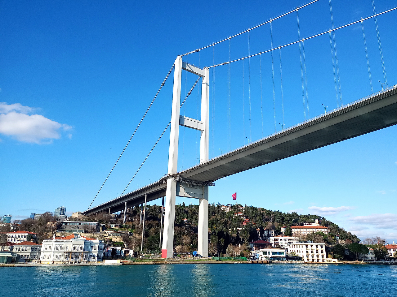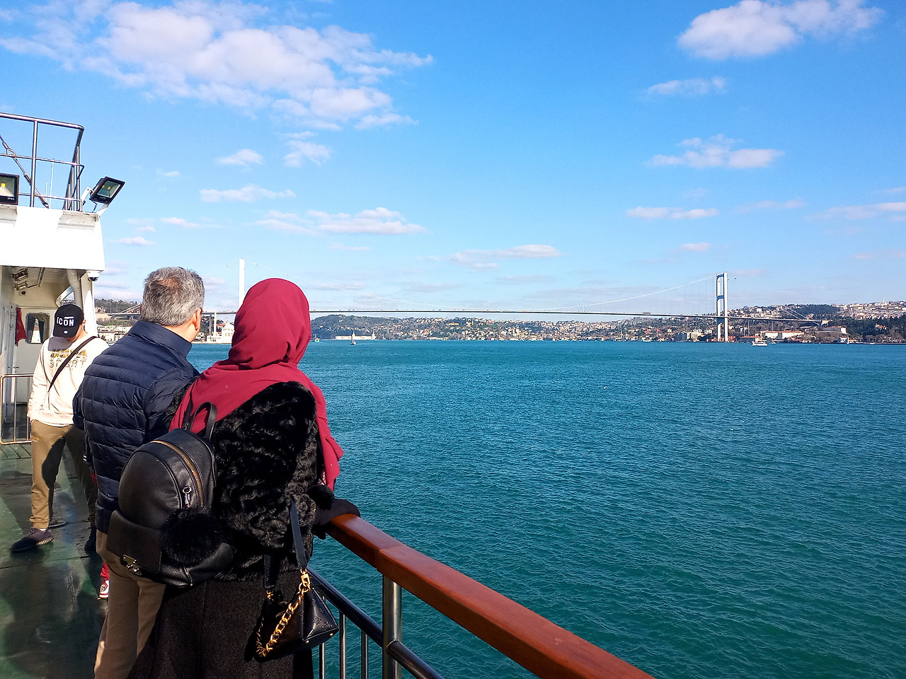 - 전날에는 10분 짜리 정기선을 타고 보스포루스해협을 일대를 누볐지만 이날은 아예 여객선을 타고 보스포루스 해협 안쪽으로까지 가보기로 했다. 요금이 65리라로 생각보다는 저렴했다. 시간은 왕복 2시간 정도였는데 보스포루스 대교 뿐만 아니라 파티흐 술탄 메흐메트 다리까지 가는 여객선이었다.