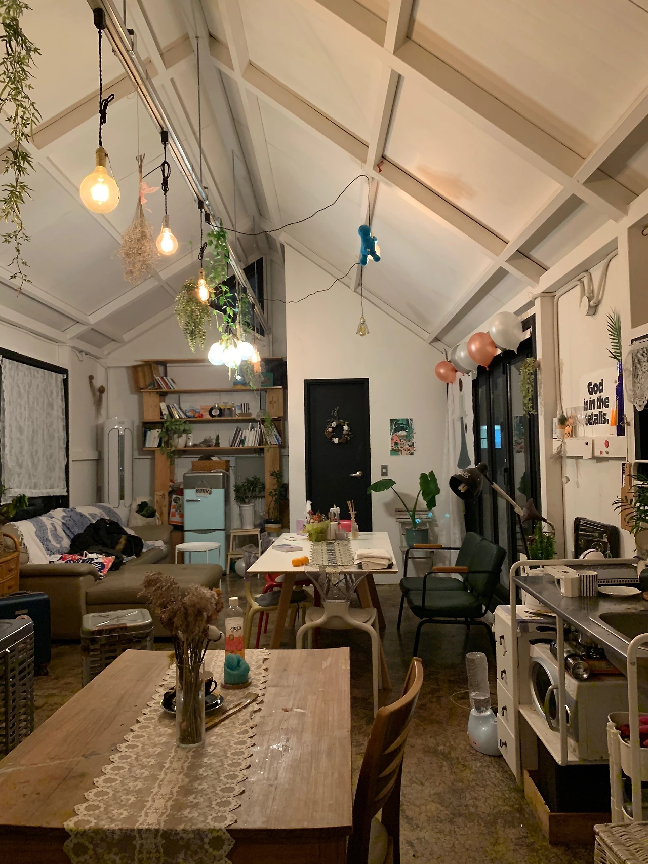 꼭대기 층에 자리한 A 프레임 하우스 문을 여니 뭔가 히피스러우면서도 아늑한 비밀의 공간이 나왔다. 어디서 막 주어온 가구들 같은데 묘하게 어울렸다. 디자이너가 틀림없다고 생각한 나의 예상과는 달리, 공간에 관심이 많은 일반인(?)이었다! 공간 기반 모임들을 만들어 보고 싶어서 이 집이 나오자마자 바로 겟 한 뒤 취향껏 꾸며봤다고. 합정에 에어비앤비도 같이 돌리면서 고정 수입을 만들 수 있는 삶을 실험하고 있단다. 최근에는 취미가 일이 되어 공공 도시재생사업 기획 일을 하고 있었다. 이 모든 게 6개월 동안 일어난 일이다.