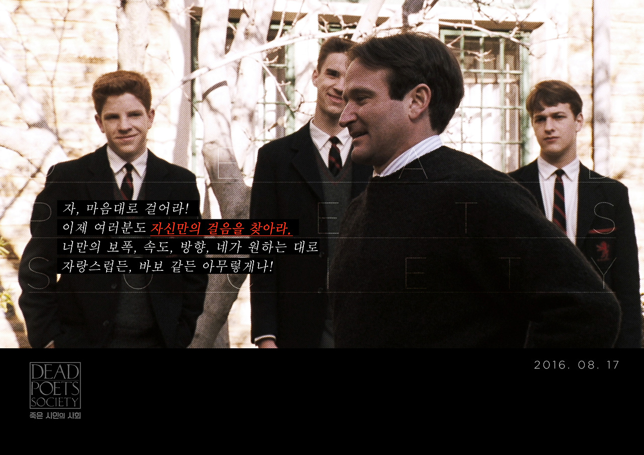 지금은 고인이 된 로빈 윌리엄스가 출연한 영화 중 두 가지를 꼽으라면 굿 윌 헌팅과 죽은 시인의 사회라는 영화일 것이다. 1989년에 개봉하여 개봉 당시에는 만나지 못했지만 나중에 웰 메이드 영화란 것을 알고 감상한 적이 있었다. 그리고 한참 지난 후 최근 이 영화가 다시 보고 싶어졌다. 사람들이 많이 공감하는 것이나 오랜 시간 인기가 있는 영화나 책이은 다른 각도로 다시 한번 바라볼 필요가 있었다.