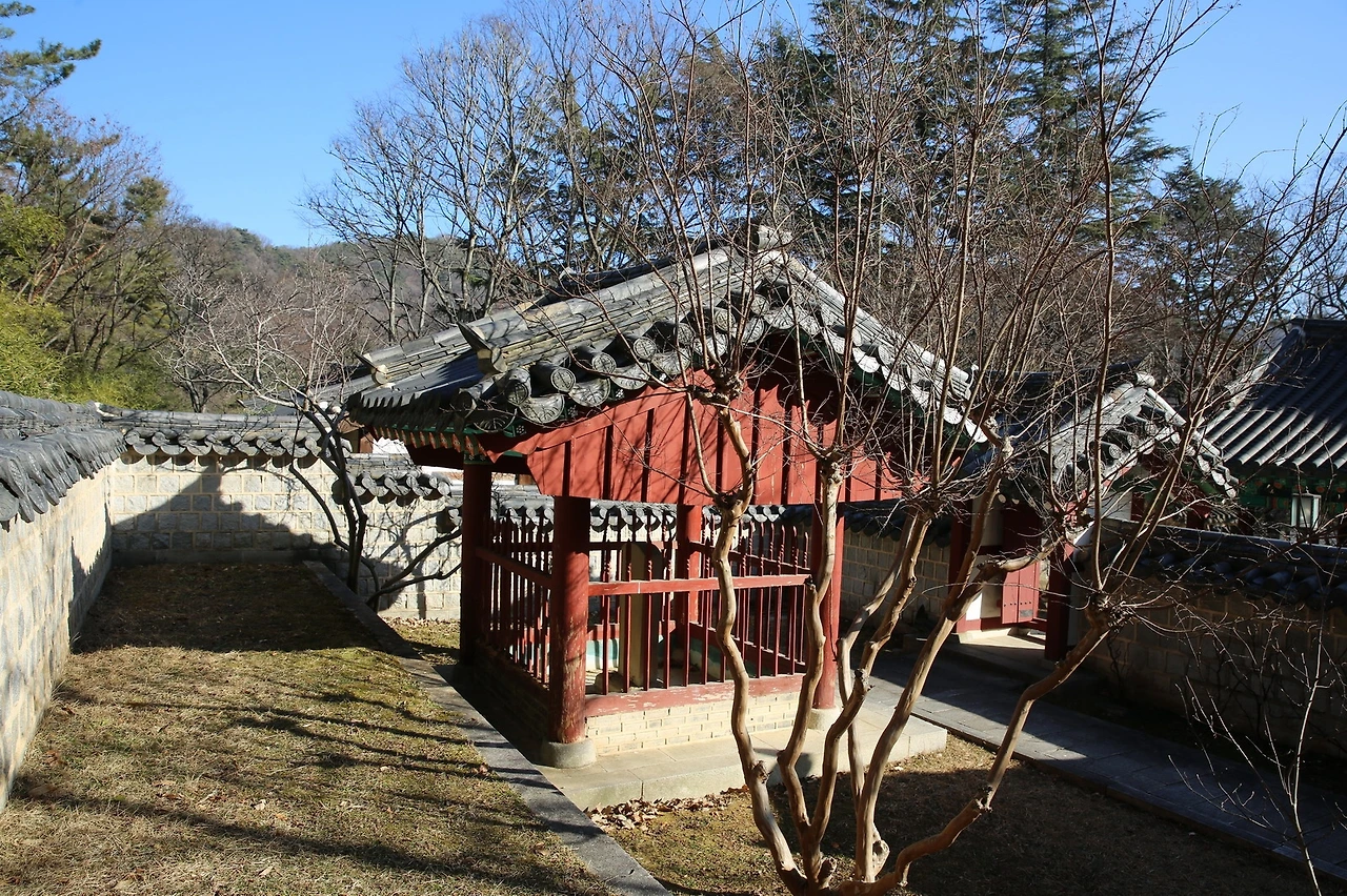 이런 형태의 정자는 문경인가를 가서 본 기억이 난다. 사찰에서 사용된 건축물인데 한국에서는 찾아보기 쉽지 않은 형태의 건물이다. 채미정은 벽체가 없고 16개의 기둥만 있는 정자로 정면 3칸, 측면 3칸의 한식 건물로 한가운데 1칸을 방으로 만들고 ‘ㅁ’ 자로 우물마루를 두른 건물이다.