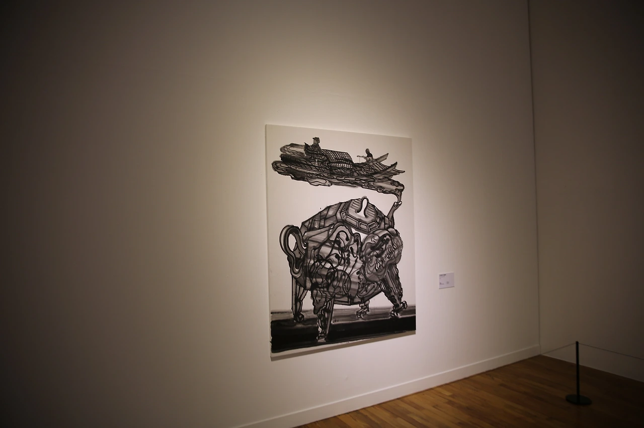 굵은 선과 산수의 그림이 현대적인 표현법과 소재의 새로운 형식으로 완성이 되어 있다. 어떤 측면에서 보면 장엄한 풍경이 있으며 한지에 수묵이라는 전통적인 매체가 색다르게 보인다.