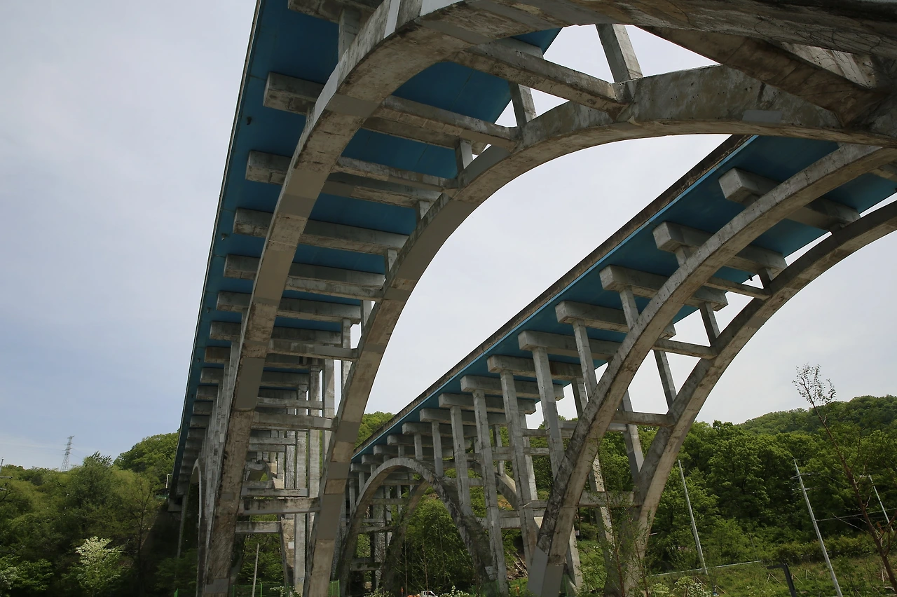 장 스팬이 필요한 구조물이 필요한 것은 다리와 수로다. 평지를 달리던 길이 강을 만나고 계곡을 만나면 이어줘야 했을 때 아치가 큰 역할을 했다. 경부고속도로로 사용되었던 이 구조물은 지금은 사용하고 있지는 않지만 토목 건축사에 큰 의미를 가지고 있다. 자격증의 도면을 그릴 때 철근을 비롯하여 구조물에 대한 계산을 하여 도면을 그리게 된다.