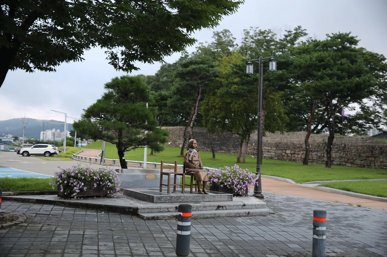 평화의 소녀상이 언제 홍주읍성에 자리하게 되었는지 몰라도 교차로가 있는 곳에 그 모습을 볼 수 있었다.