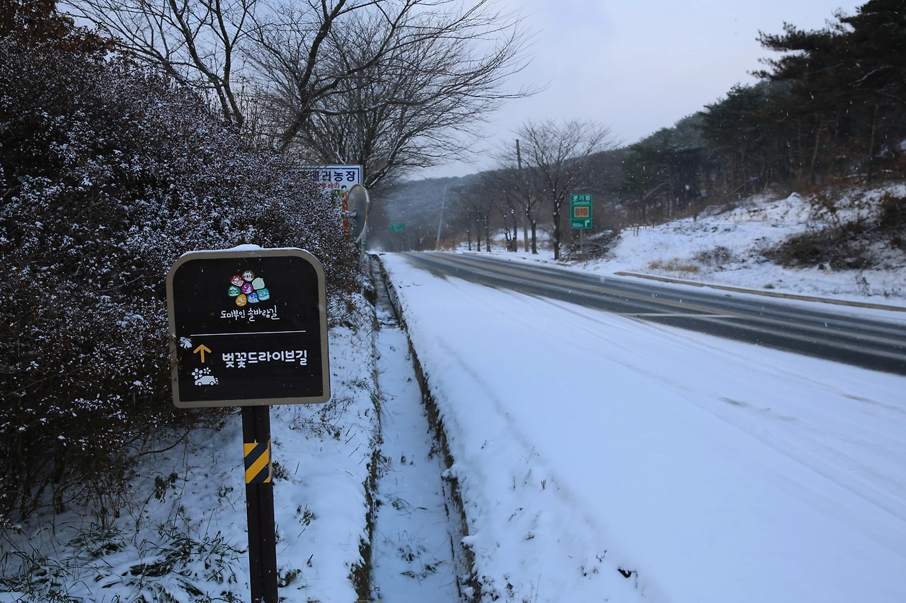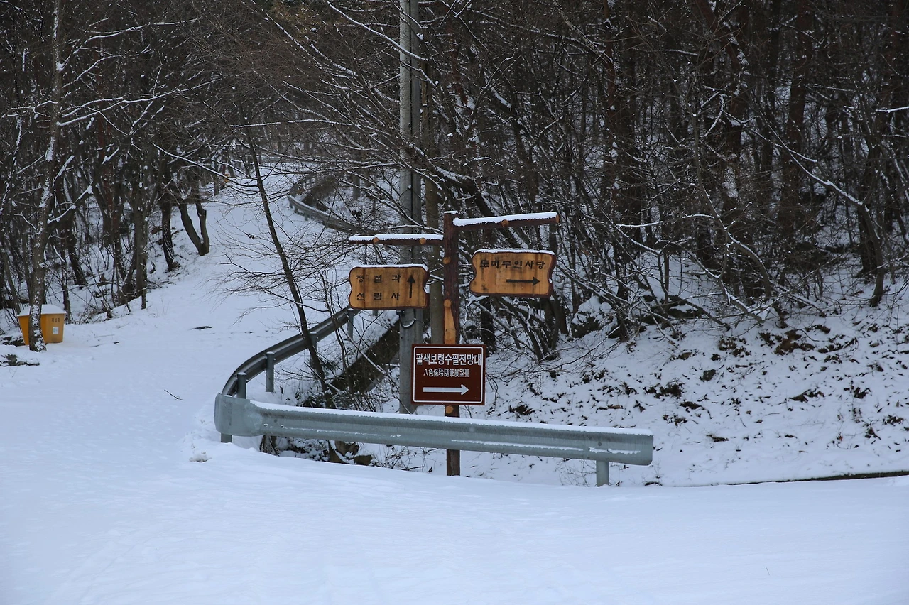 주만 : 난 그냥 차에 있으면 안되나. 아이젠을 신고 온 것도 아니고 저 눈길을 올라가라고? 난 여기서 도미부인 솔바람길을 보면서 있으면 참 좋을 것 같은데..