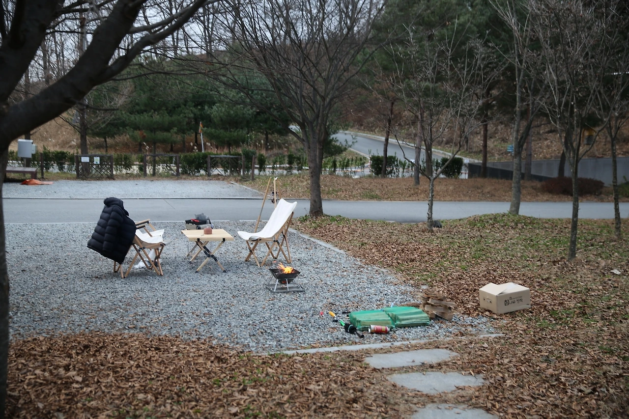 겨울은 불멍을 때려도 덥지가 않으니 캠핑에 오히려 적당한 계절일지도 모른다. 게다가 코로나19의 확산으로 인해 실내에서 쉬는 것도 마땅치 않기 때문이다. 로하스 가족캠핑장 뒤로는 산책할 수 있는 길이 잘 조성되어 있다. 사람도 많지도 않은 데다가 평탄해서 걷기에 수월하다.