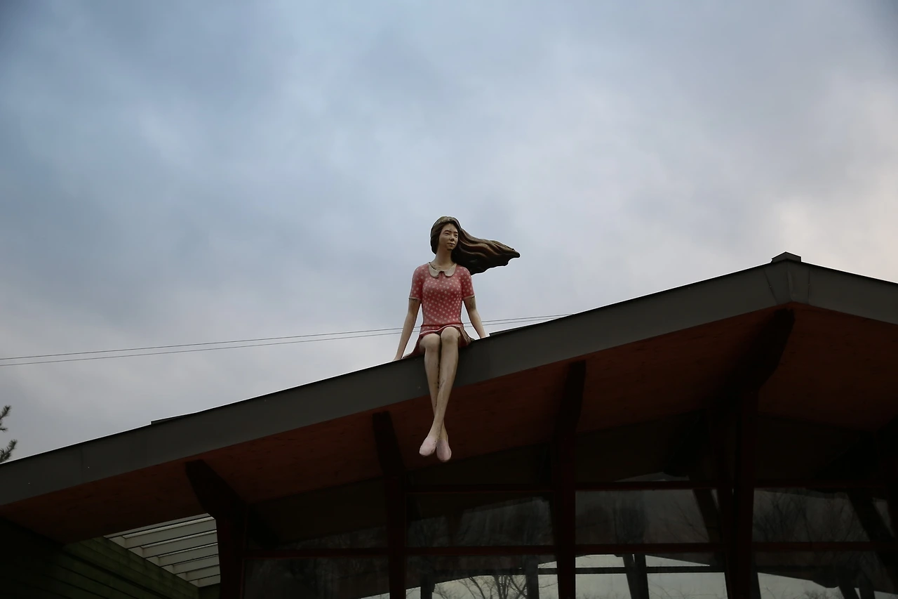 이곳을 참 많이 왔다 갔다 했는데 저 지붕에 있는 여인을 왜 못 보았을까. 상당히 높은 높이에서 태연자약하게 앉아 있다.