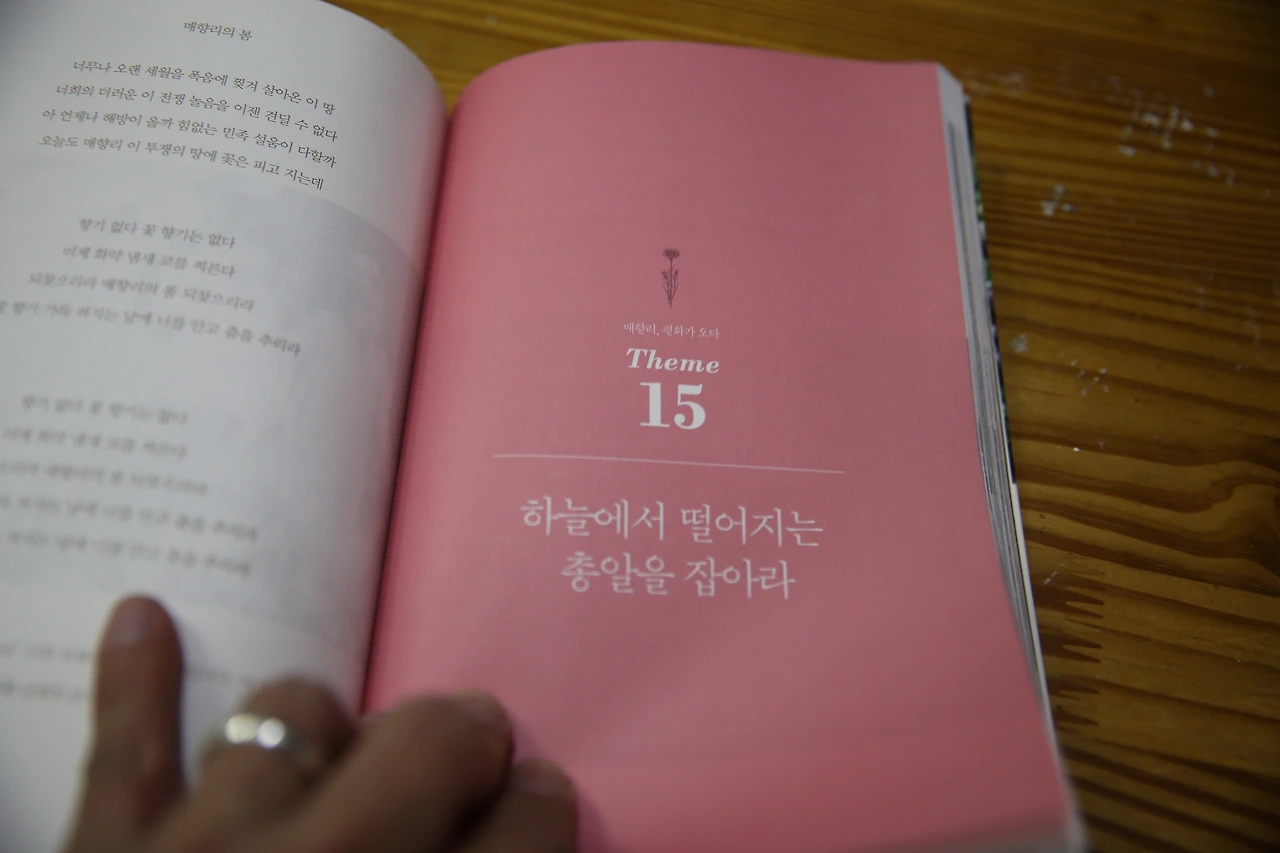 매화꽃 향기가 피어나는 이 시기에도 비행기 날던 전쟁터의 공간에서 가슴 조마조마하게 살아왔던 사람들의 이야기가 담겨 있다. 평화를 뜻하는 말로 유대교의 살롬(sālom), 그리스의 에이레네(eirēnē)와 로마의 팍스(pax)등으로 대신하고 있다.