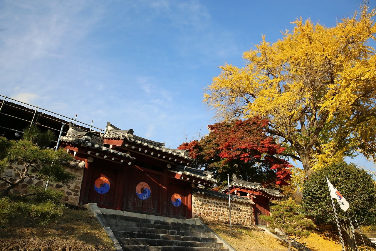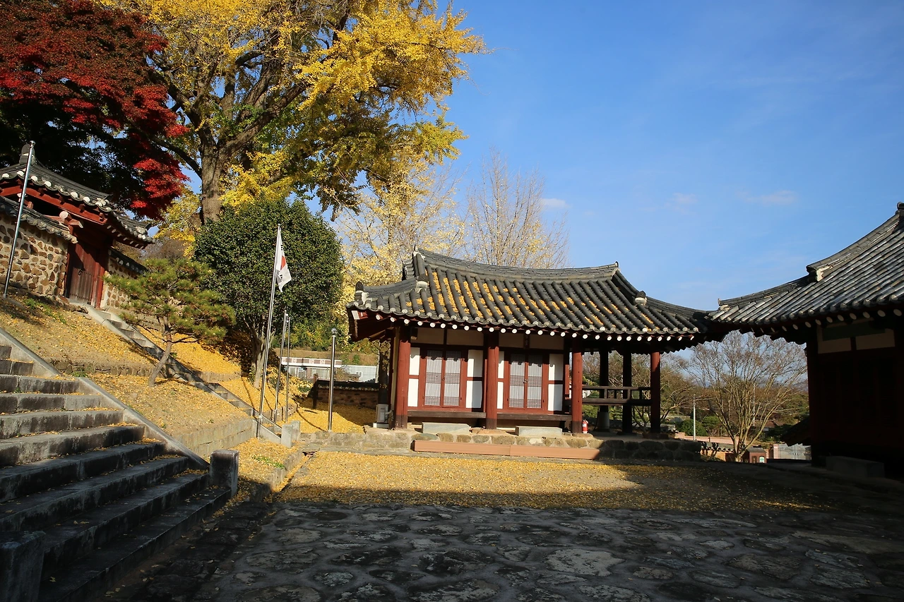 향교의 안으로 들어와서 보니 고즈넉한 풍경이 마음의 글처럼 펼쳐졌다. 영국 속담에 아름다움이란 보는 사람의 눈에 달려 있다. 어떤 것을 볼 수 있느냐에 따라 사람이 느낄 수 있는 것은 천차만별이라는 이야기다. 어떤 글을 읽고 싶겠는가. 황금색의 단풍잎이 수북하게 쌓인 곳에서 공자는 평생을 마음의 나침판에 대한 이야기를 말했다.