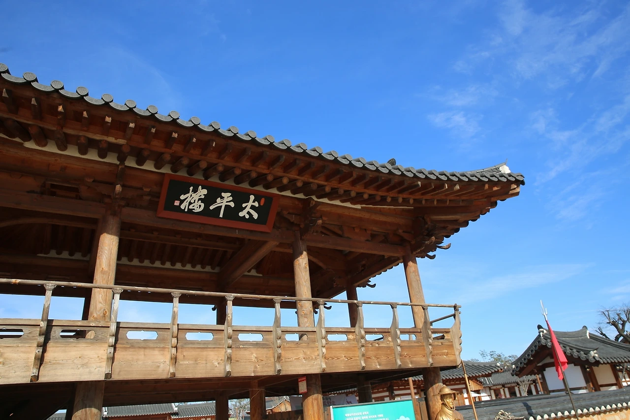 이곳은 상주의 태평성대경상감영공원이다. 옛 상주의 영광을 재연하자 라는 취지로 상주의 대표 문화 공간 복합단지로 조성되었는데 조선시대 관찰사가 근무하던 청유당, 제금당 등 18개 동의 전통한옥시설 등이 복원되어 있다. 첫 느낌은 바로 여유롭다이다. 옛날에는 앞에 사람들이 살던 민가가 있었을 텐데 그 민가까지 있었다면 더없이 좋았을 오래된 도시의 느낌이 든다.