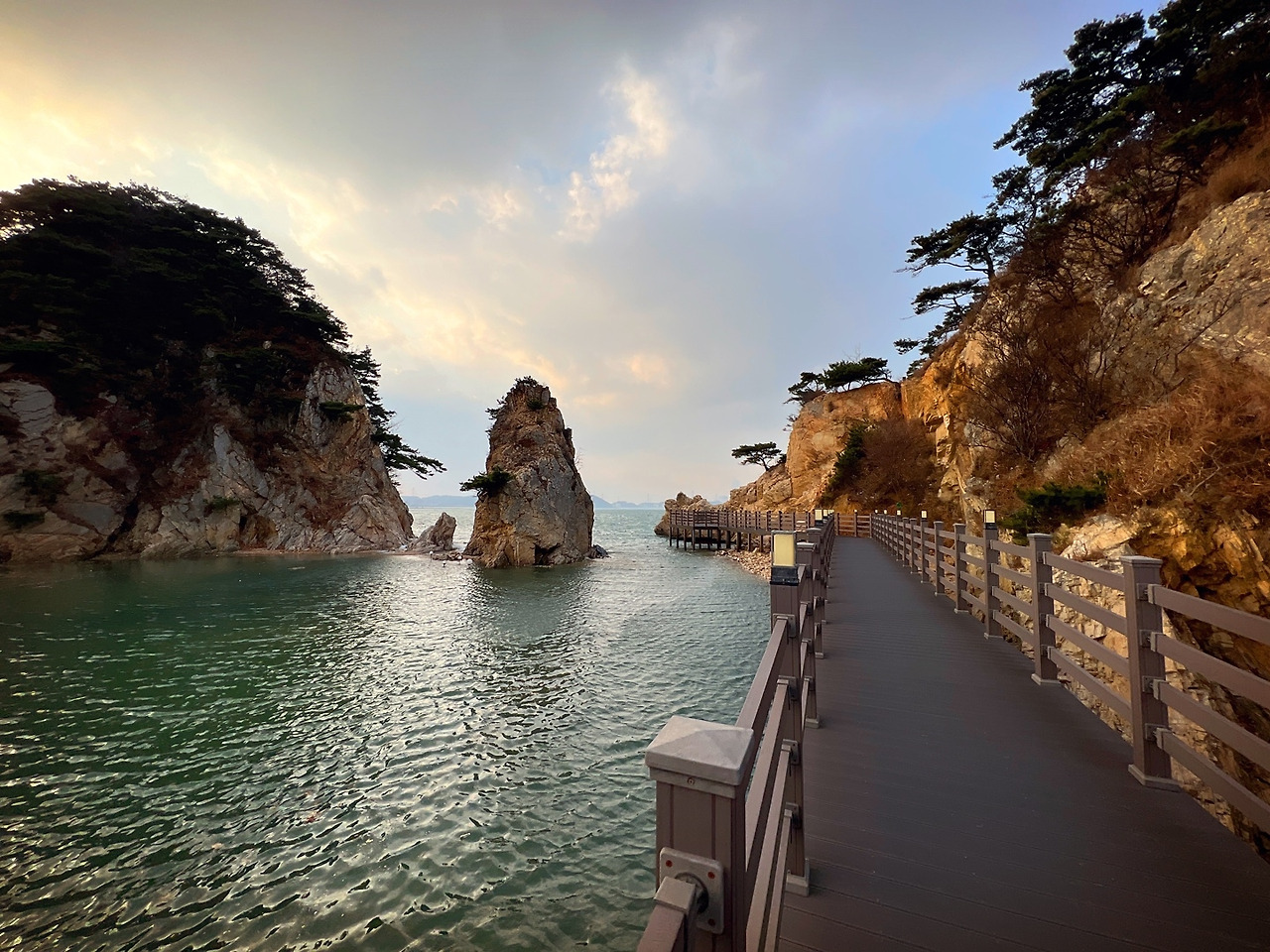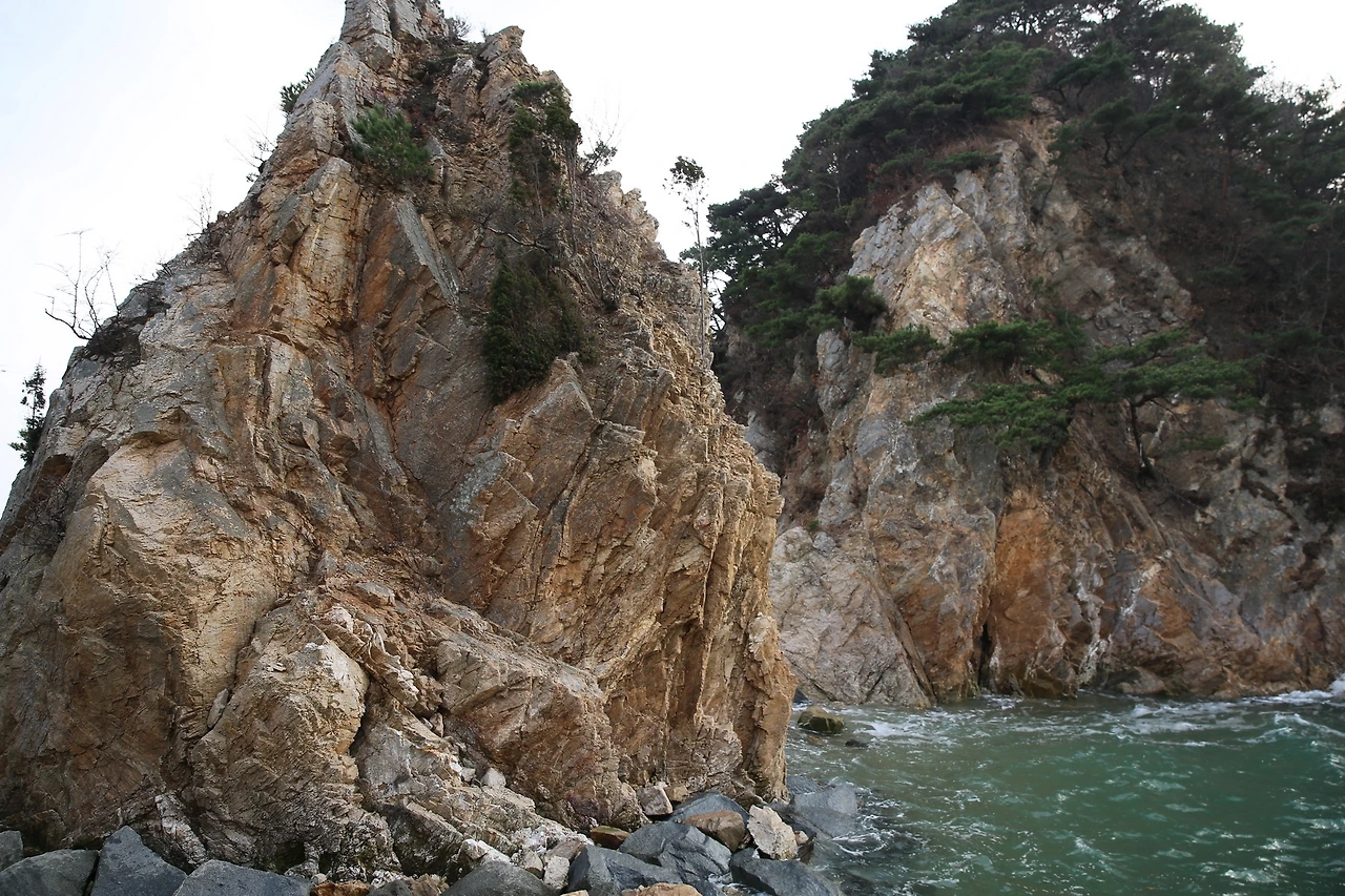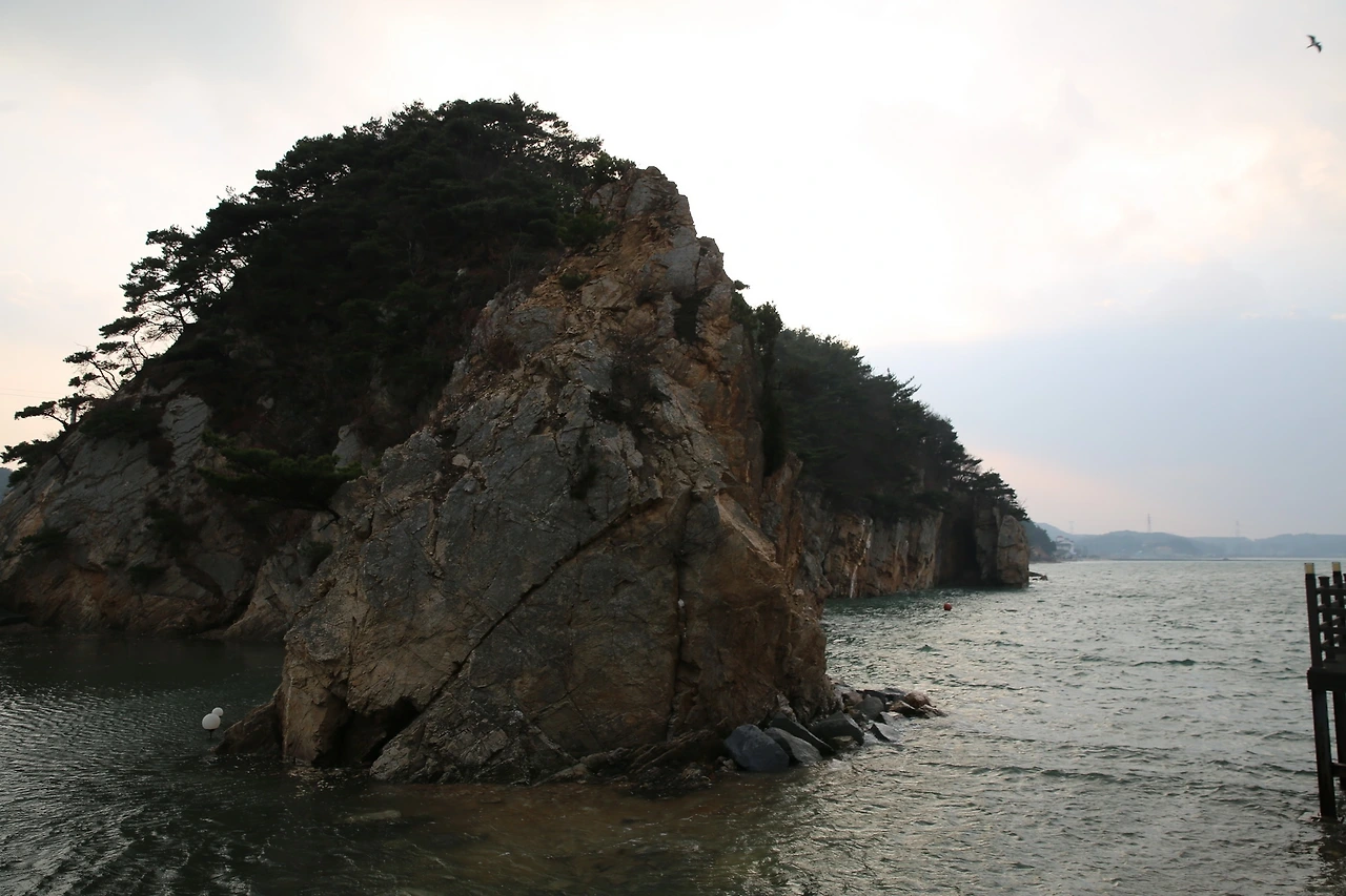 이 아래에는 바닷물로 가득 차 있지만 간조시에는 바닥이 모두 보여서 돌산에 접근할 수가 있다.