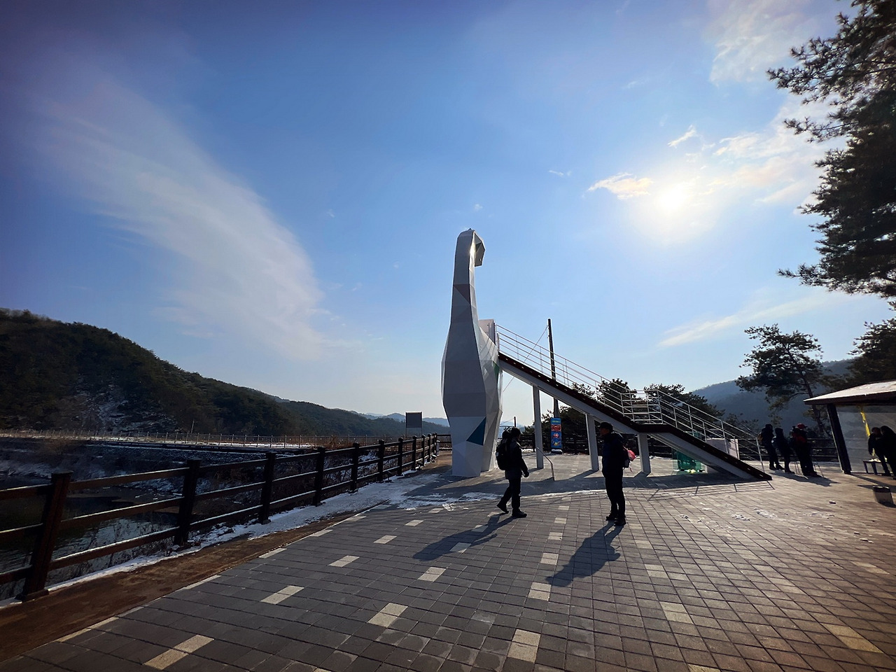 겨울의 분위기가 물씬 묻어나는 이곳은 천장호의 반대편에 자리한 곳이다. 이곳에서 올라가면 스카이워크를 통해 천장호로 갈 수 있는데 그곳에는 새롭게 자리 잡은 천장호의 공룡 조형물이 자리하고 있다.