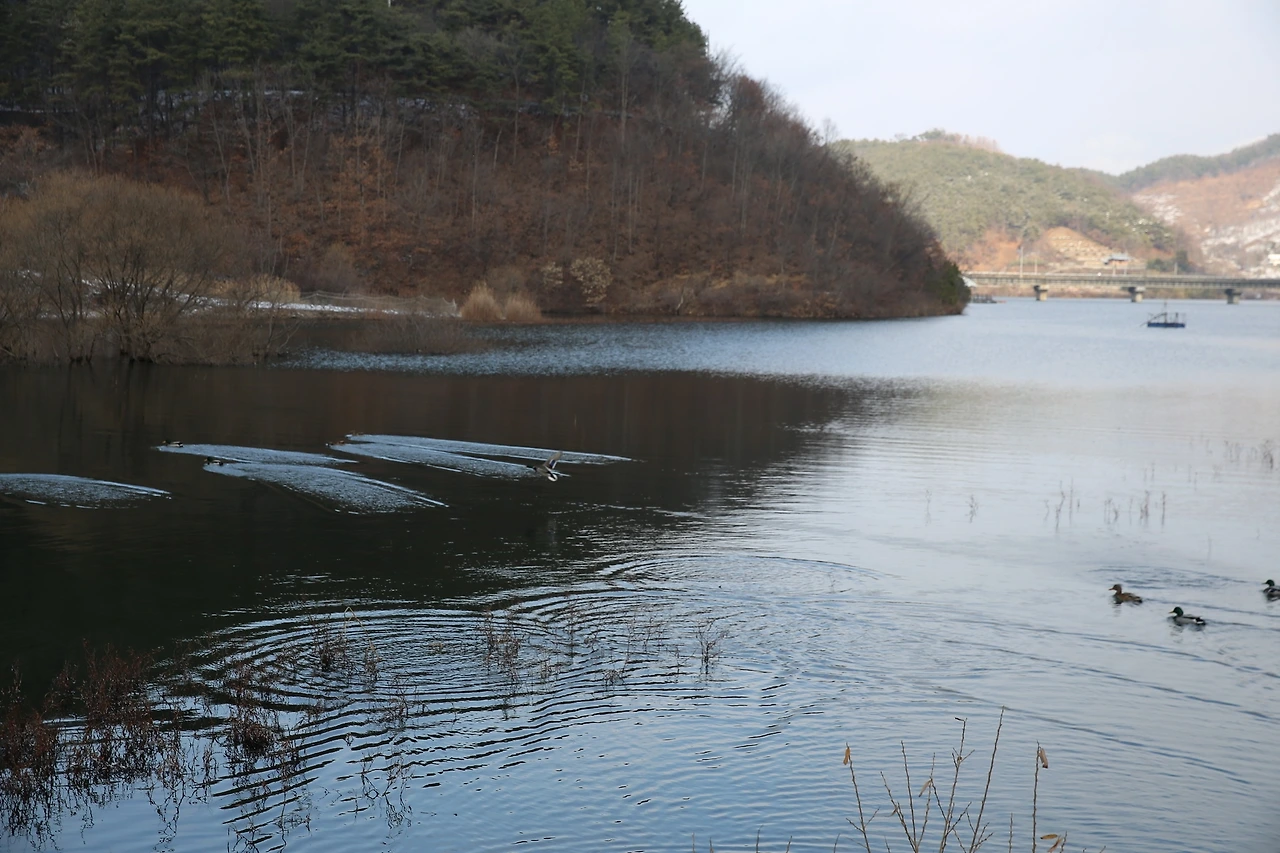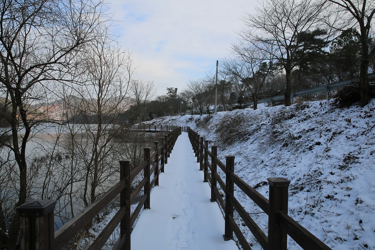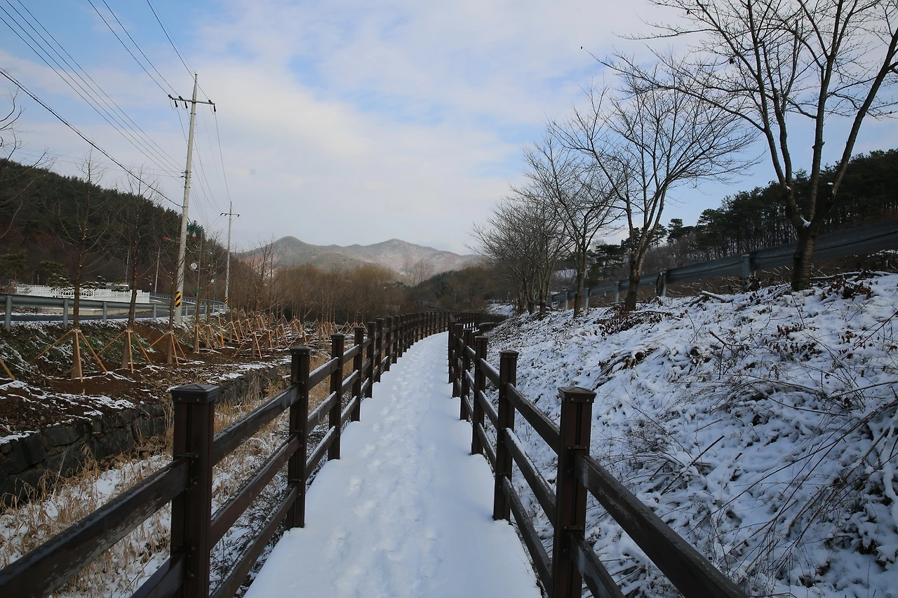 칠갑산 자연휴양림으로 들어가는 입구에는 칠갑호가 있는데 칠갑호의 주변으로는 데크길이 만들어져 있다. 눈이 수북하게 내린 날 데크길에도 눈이 가득 채우고 있었다. 이날은 하얀, 갈색, 푸른, 마음빛 등 천연의 빛을 품은 겨울 청양을 만나러 떠나본다.