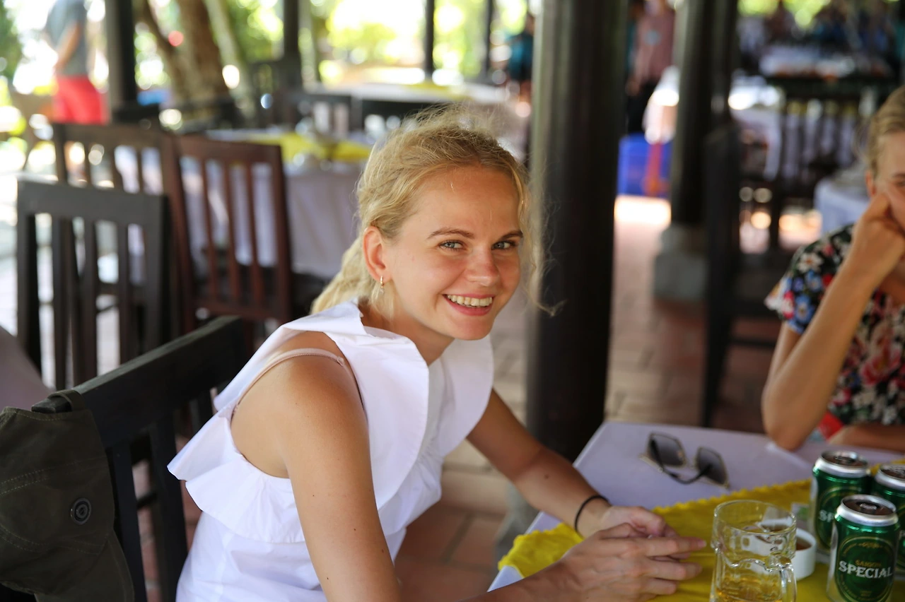 베트남에서 한국보다 더 먼 곳 잉글랜드에서 혼자 여행 왔다는 그녀는 아무도 없는 곳에서 베트남전 동영상을 보고 있었다. 큰 물통을 가지고 다니는 것을 보니 베트남 날씨가 덥긴 더운 모양이다. 잉글랜드에서 가장 유명한 것은 무엇일까. 아마도 최근에 일어난 브렉시트가 아닐까. 그녀에게 그것에 대해 어떻게 생각하냐고 묻자 긍정적으로 생각하지는 않는 듯했다. 혼자서 이 먼 곳까지 여행 온 그녀의 표정은 매우 밝았다.