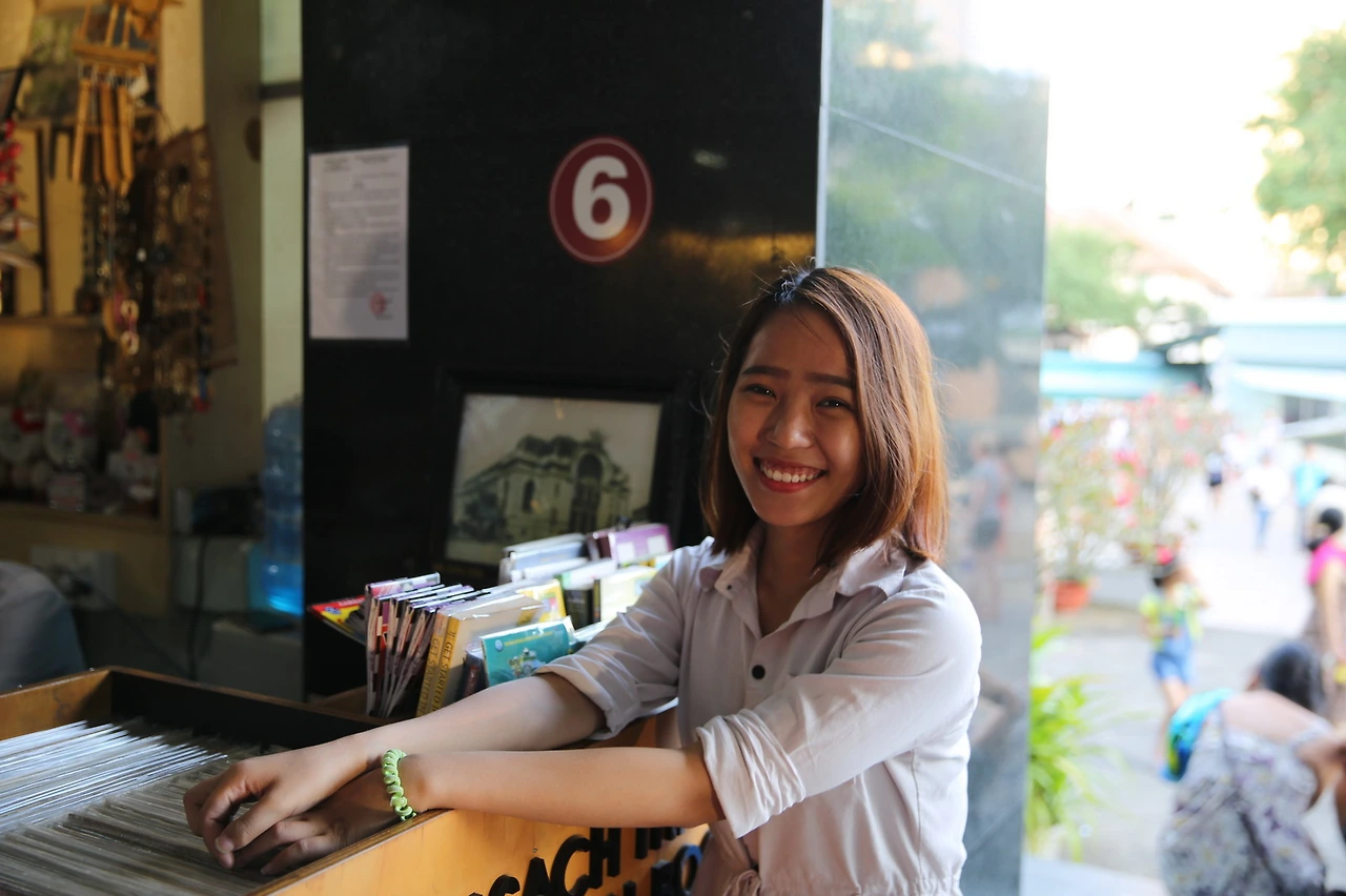 호찌민시 전쟁기념관 1층 샵에서 일을 하고 있는 분으로 미소가 아름다워 말을 걸었다. 영어에 능숙하지는 않지만 몇 마디 만으로도 친해진 것처럼 느껴지는 것은 왜일까. 한국 사람들은 미소가 참 어색할 때가 많은데 왜 이렇게 미소가 자연스러운지 참 보기가 좋다.