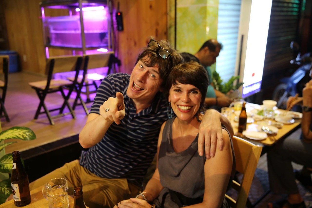 둘째 날이었나? 숙소 근처의 비어 샵에서 만난 잉글랜드 커플들이다. 나이는 40대 후반? 정도로 보이는데 무척이나 유쾌한 사람들이다. 이런 여행을 다니는 것을 무척이나 즐긴다고 한다. 이날 가게 사장이 자신의 베트남 친구들과 놀다가 필자를 끼워준다. 덕분에 추가적인 부담 없이 요리를 비롯하여 맥주를 엄청나게 먹었다. 다음에 베트남 호찌민을 방문하면 언제든지 술과 요리를 대접해주겠다는 친절함을 베풀어 준다.