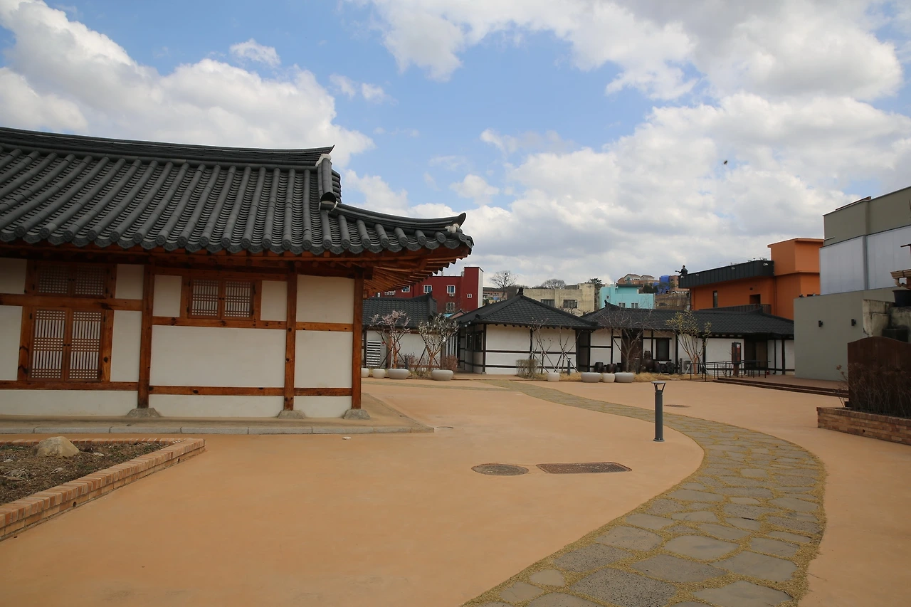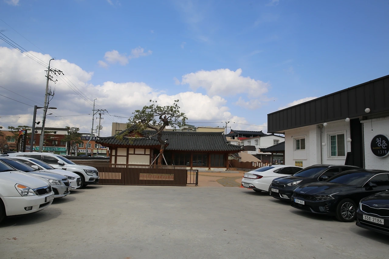 공주의 하숙촌이며 게스트하우스가 자리한 곳에는 다양하고 많은 시설이 들어서 있었다. 멋들어진 소나무 하나가 마당에 심어져 있어서 운치를 더해주는 곳이다. 초가집 담벼락에 기와집 돌담에 피어나는 봄 꽃이 마중을 나오기에 좋은 날이다.