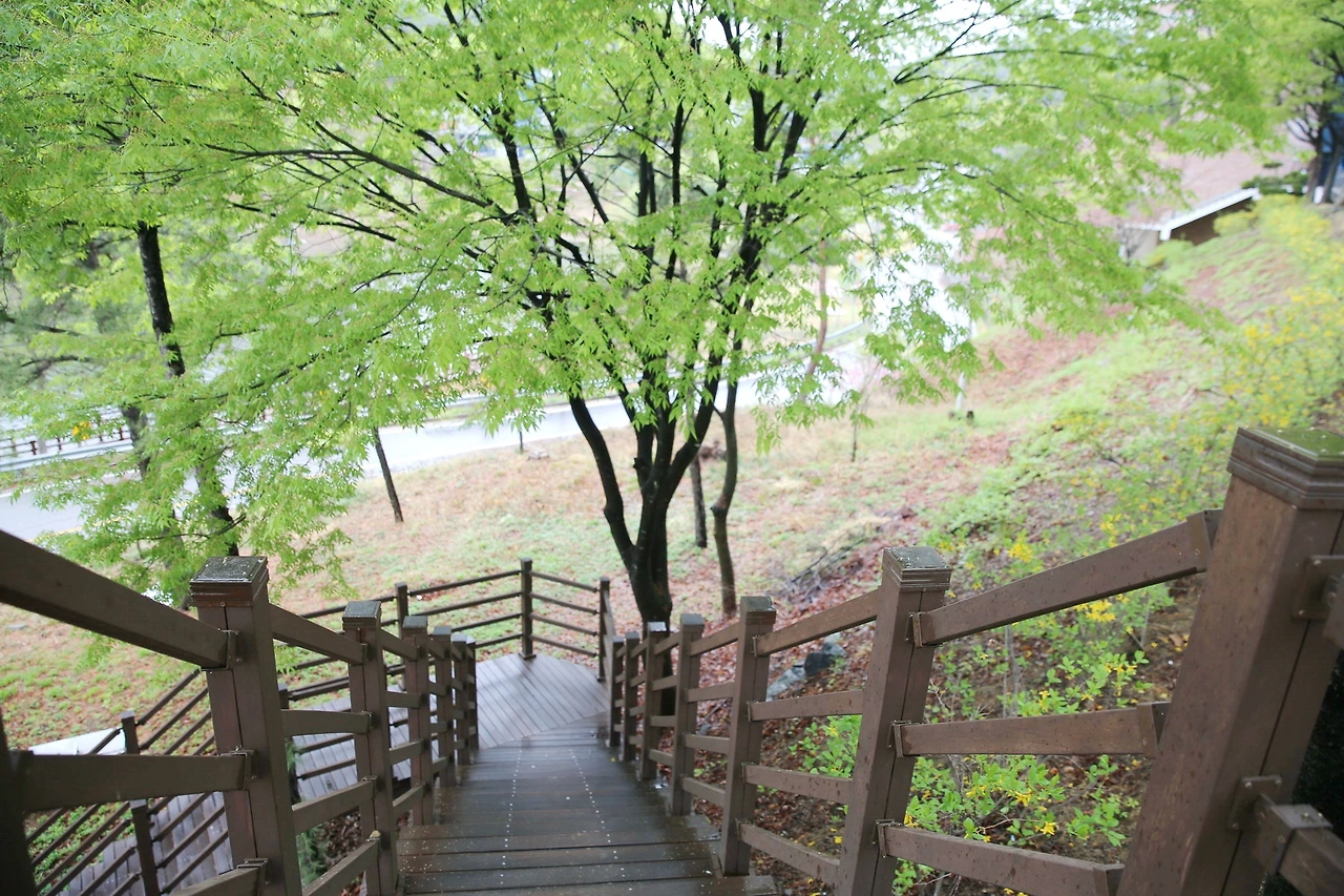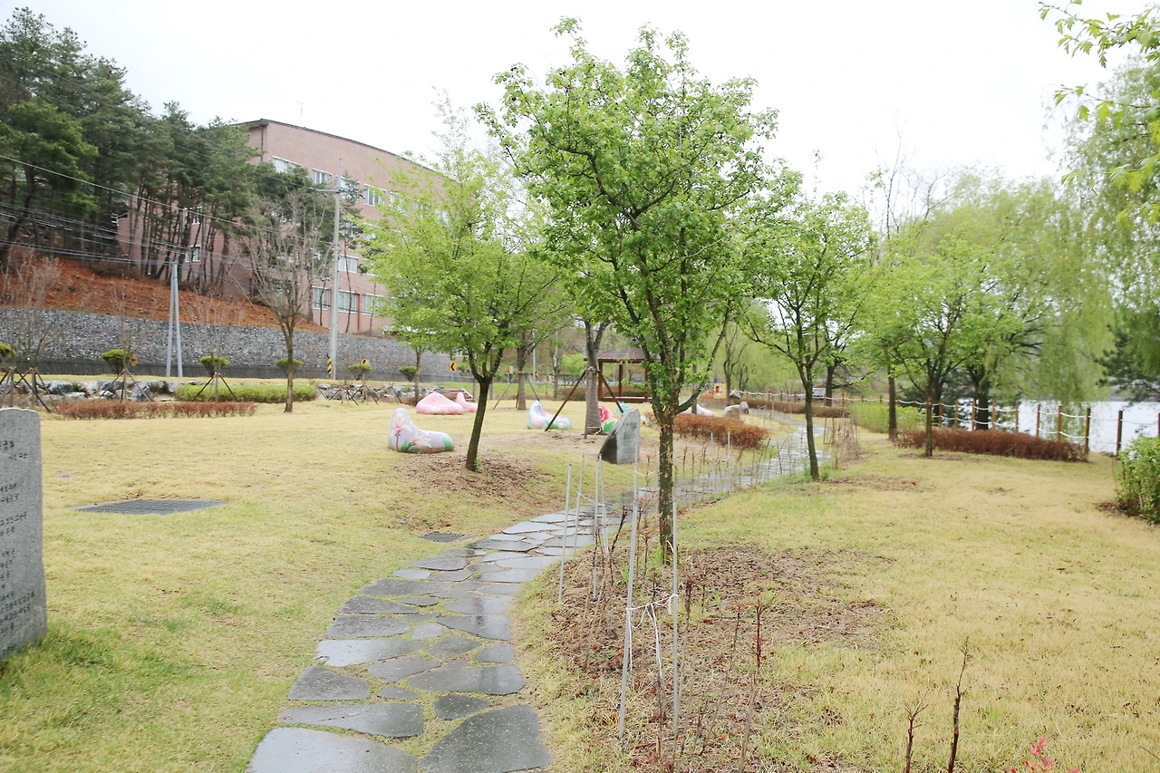 물이 흐르고 꽃이 피기 시작하는 절기에 비가 내리는 날 구미에 자리한 산동참생태숲으로 참여의 숲을 찾아가 보았다. 구미의 성공한 산림문화 휴양인프라 시설로 손꼽히고 있는 이곳은 가족단위, 학교 등의 단체 방문객들도 찾는 곳이라고 한다.