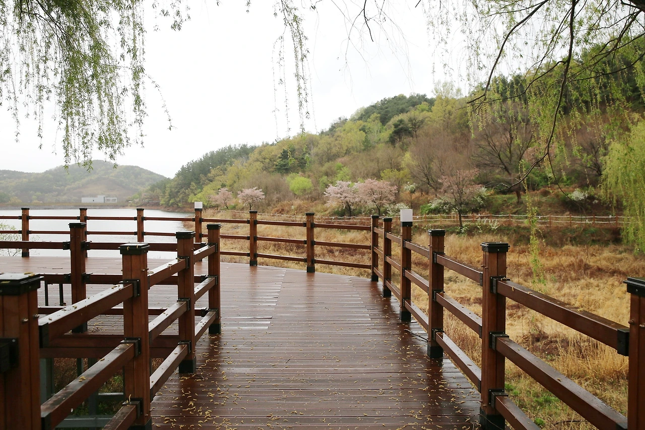 저수지나 강가, 천변에는 자연스럽게 친수공간이 조성이 될 수 있다. 이 생태공원에는 버드나무들이 많은 것이 특징이다. 버드나무는 물을 좋아해서 물가에는 버드나무들이 많다. 생태여행은 때론 좁은 오솔길로 갈 때 다양함을 느낄 때가 있다. 나무도 풀도, 숲도 보며 내리는 비도 잘 피해 가면서 봄의 향기를 느껴볼 수 있다.
