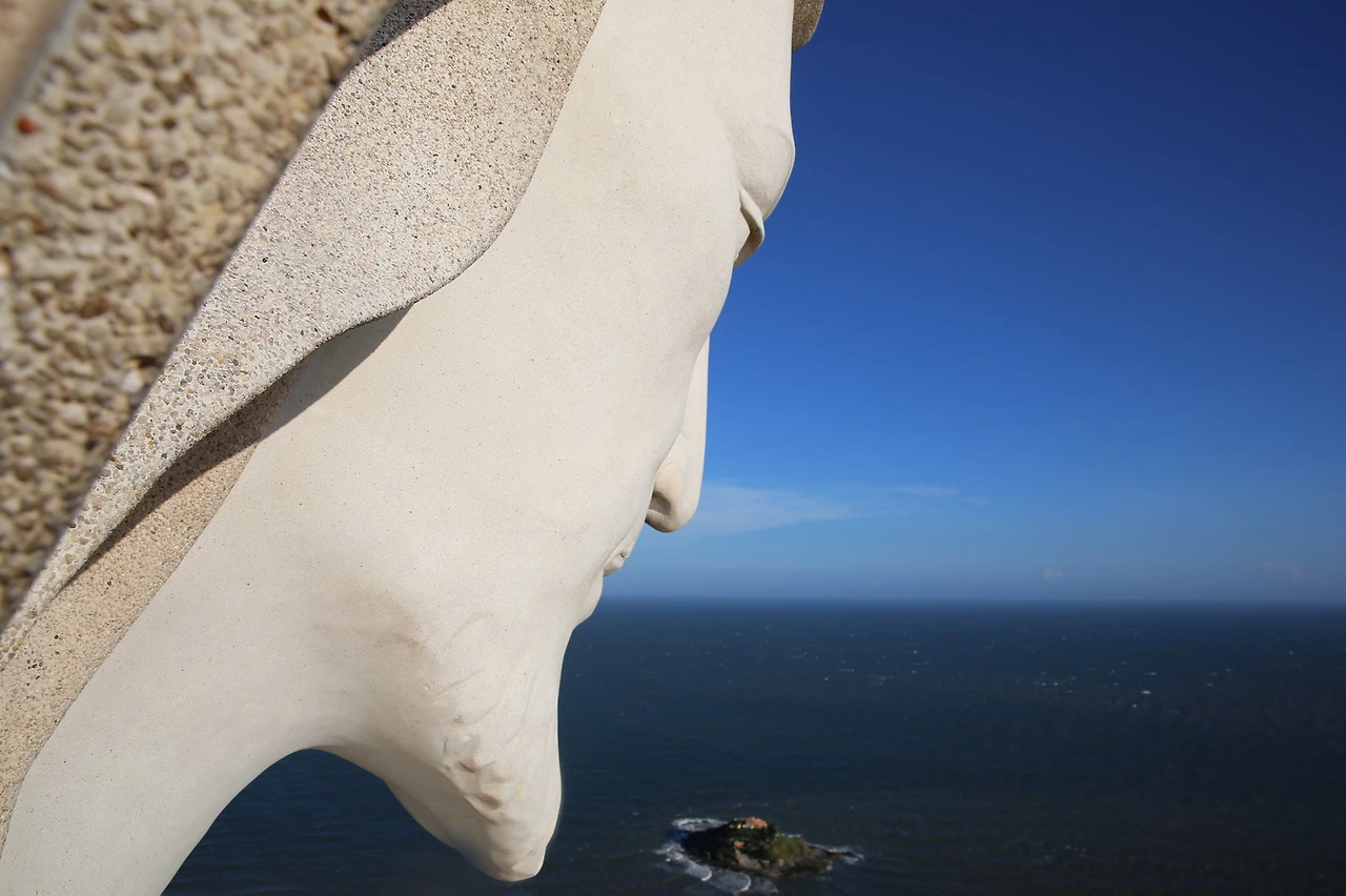 꼭대기에 올라와서 예수의 어깨에 난 공간으로 바라보면 붕타우의 시내 모습이 이렇게 보인다. 높이 30m의 예수상 내부에는 나선형 계단이 설치돼 있어 어깨 부분까지 올라갈 수 있다.