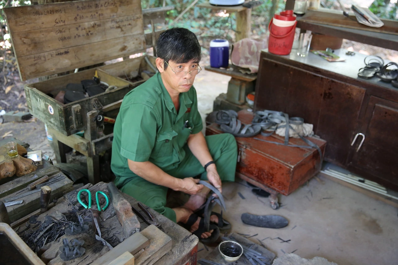베트남은 전쟁 중에 신발은 타이어를 재료로 이용해 만들어 신고 다녔는데 구찌터널에는 아직도 그 옛날 방식을 고수하며 신발을 만들어서 파는 곳이 있었다. 몸에는 그렇게 좋지는 않을지 몰라도 효과적인 수단이었을 것이다.