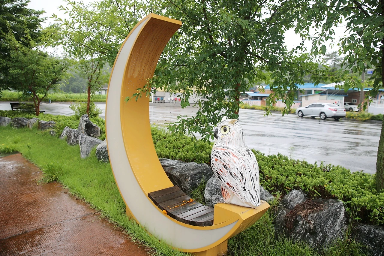 초승달 모양의 조형물에 부엉이가 앉아 있다. 부엉이는 사람들이 왜 좋아할까. 친숙하지만 사람에게 해를 끼치지 않고 그 모습이 귀엽기 때문이 아닐까. 그래서 부엉이를 좋아하는 사람들이 적지가 않다. 옛 마을에서 주로 하는 지신밟기란 음력 정초에 지신을 달래며 나쁜 액운은 몰아내고, 복은 불러들이는 우리 민족의 소박한 정서가 담긴 민속놀이다.