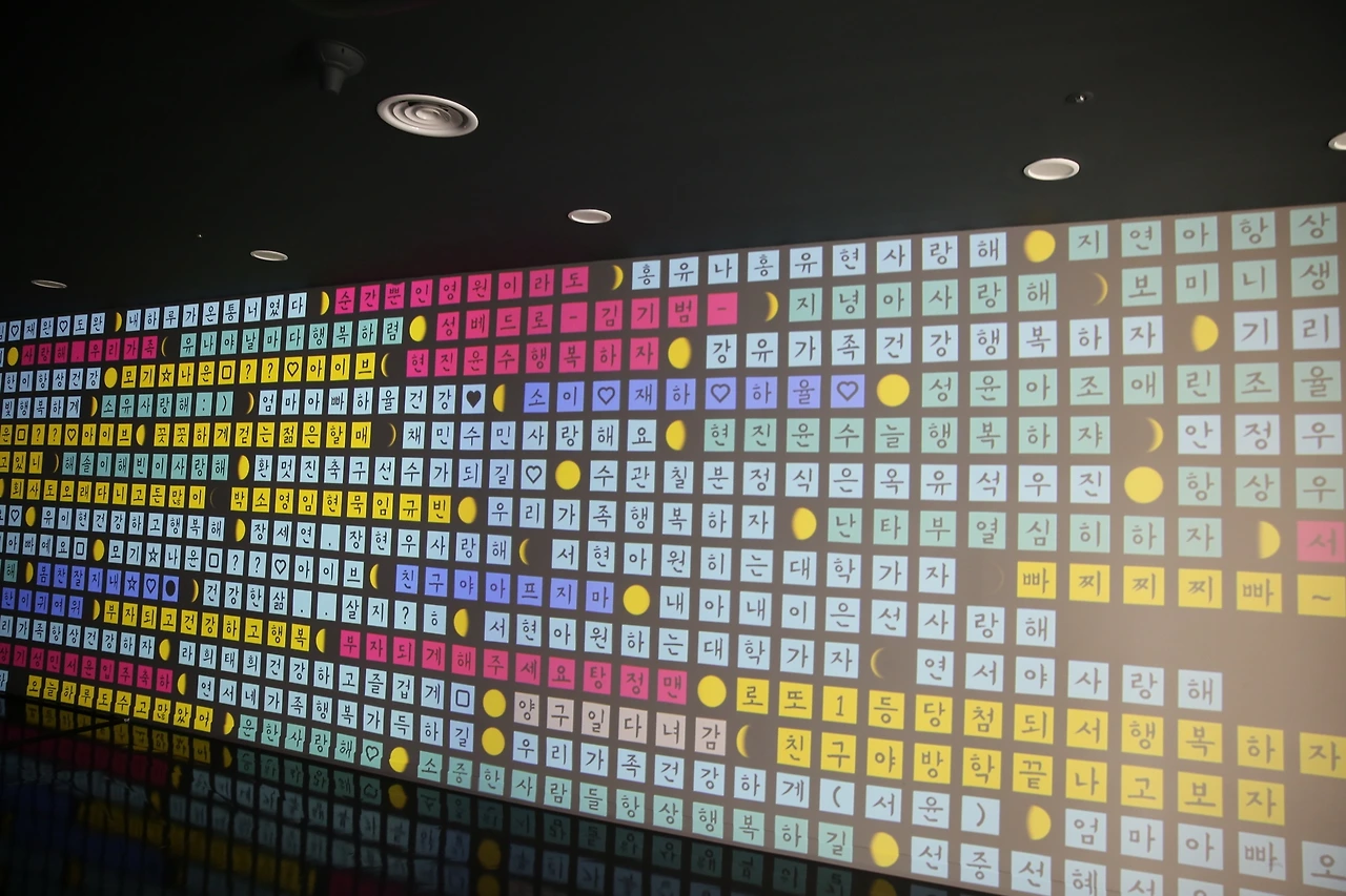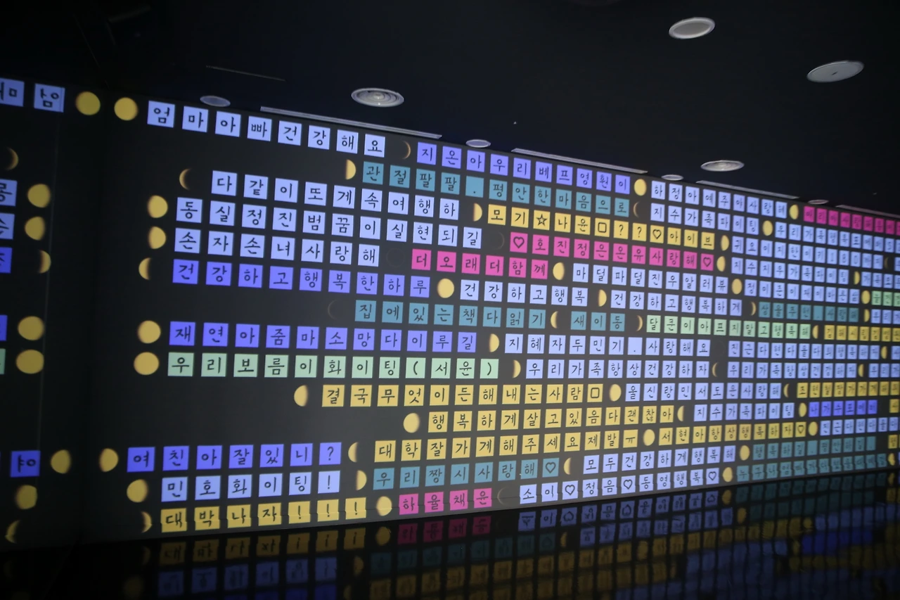 수많은 한글들 속에 순간순산 간 떠오르는 장면과 생각들이 빠르게 스쳐 지나가고 있다.