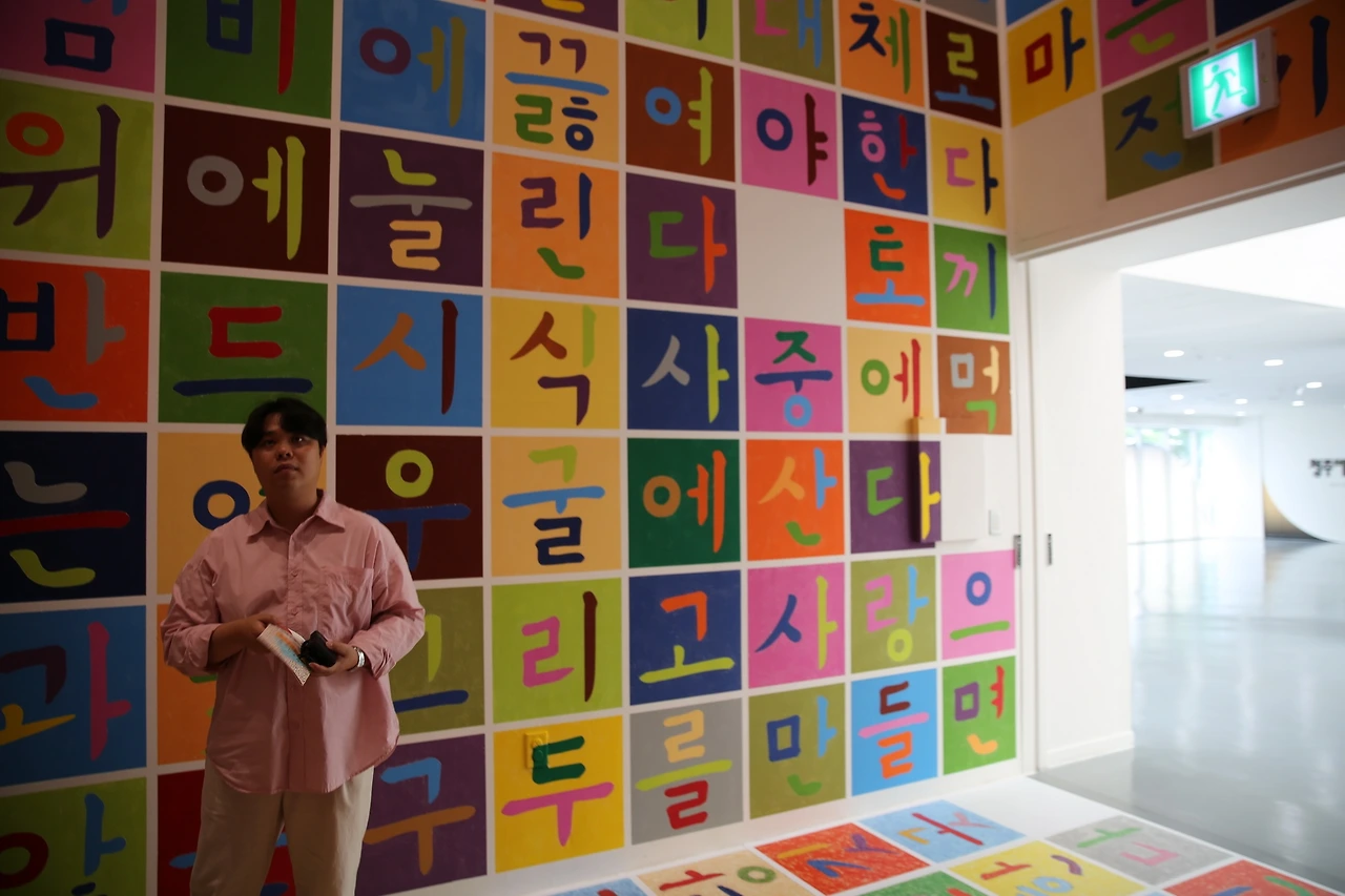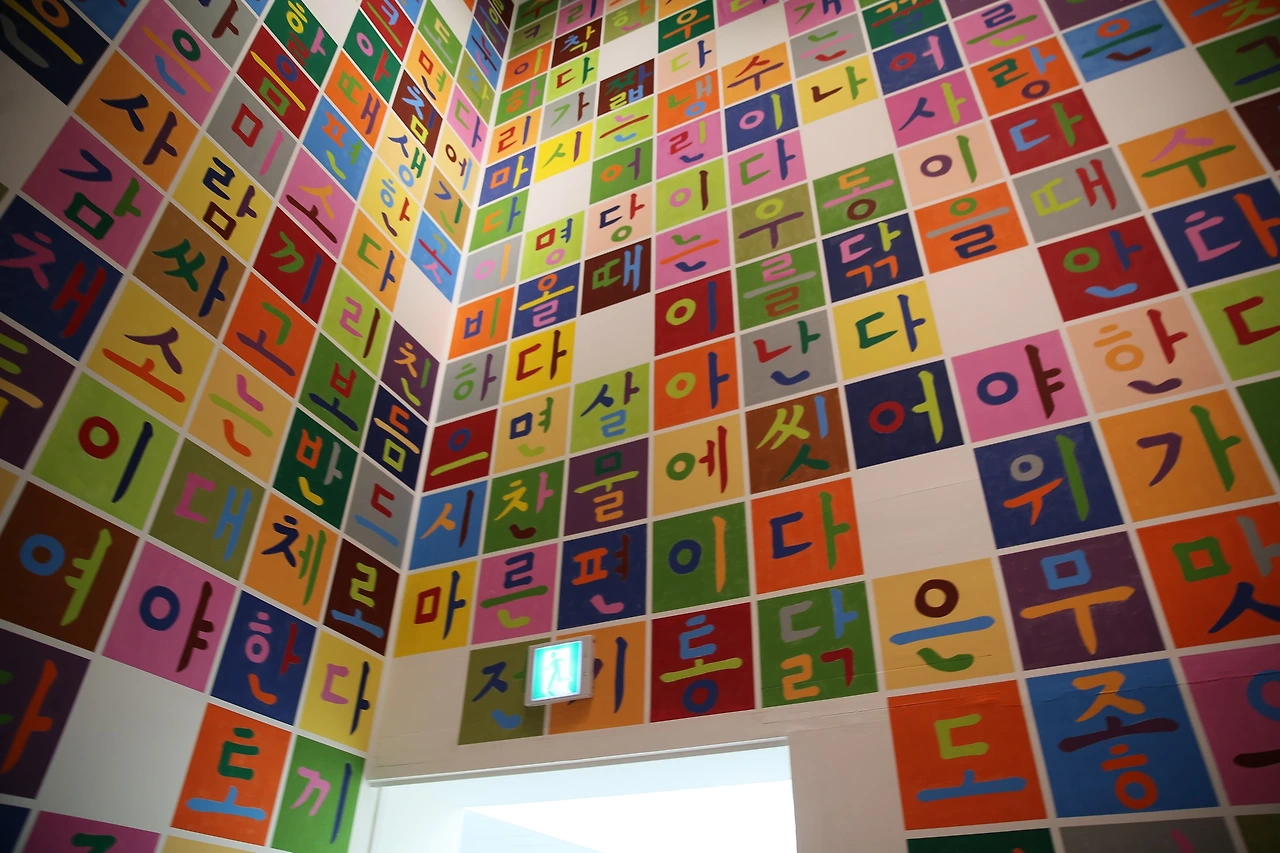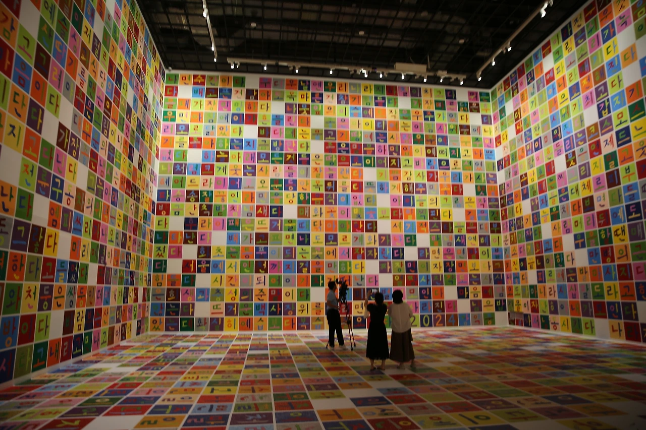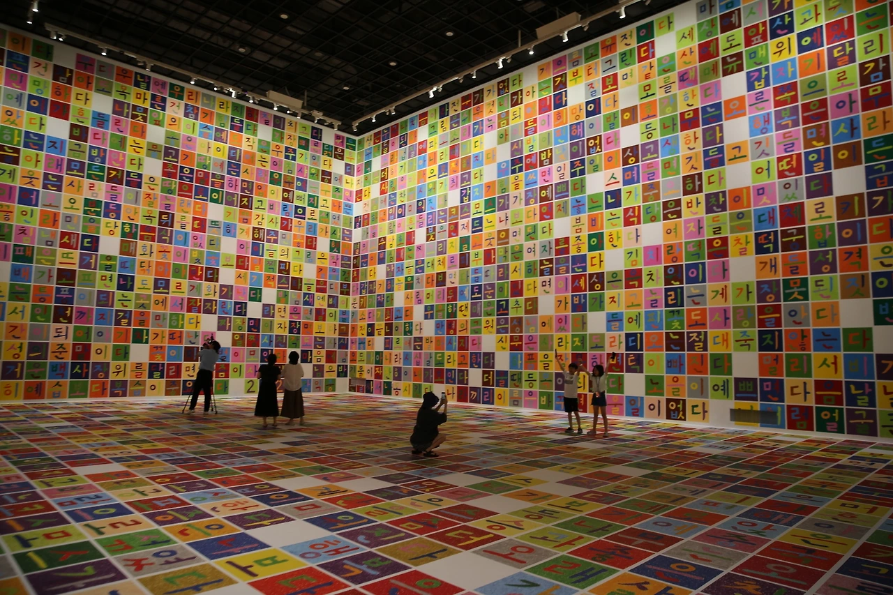 전 방송국 공개홀로 쓰였던 10m 높이 대형 전시장은 전시장 4면과 바닥까지 모두 작가가 일상에서 얻은 삶의 지혜를 짧은 문장으로 적은 '내가 아는 것' 시리즈로 꾸며두었다.
