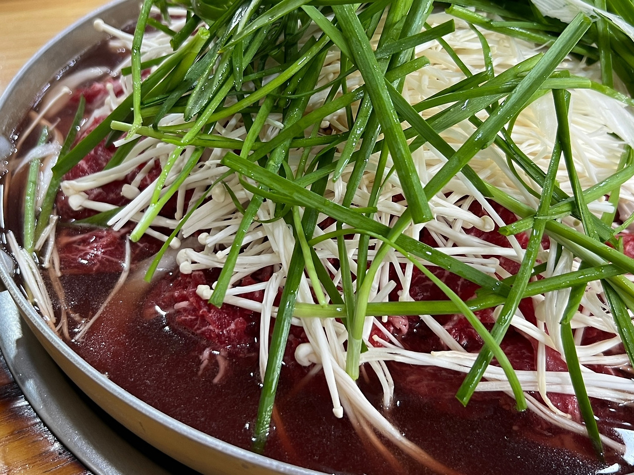 육수 불고기는 전골에서 유래됐다고 한다. 쇠고기를 얇게 썰어 양념장에 재웠다가 구워 먹는데 고구려의 맥적(貊炙)에서 유래한 것으로 알려져 있는 불고기는 울산광역시 울주군이 유명하다고 알려져 있다. 불고기의 부위는 주로 소의 등심, 안심, 앞다릿살 등의 부위를 골라 만든다. 넓적한 불판에 고기와 여러 가지 채소, 당면 등을 넣고 육수를 자작하게 부어서 익혀 먹는 불고기는 달달해서 좋다.
