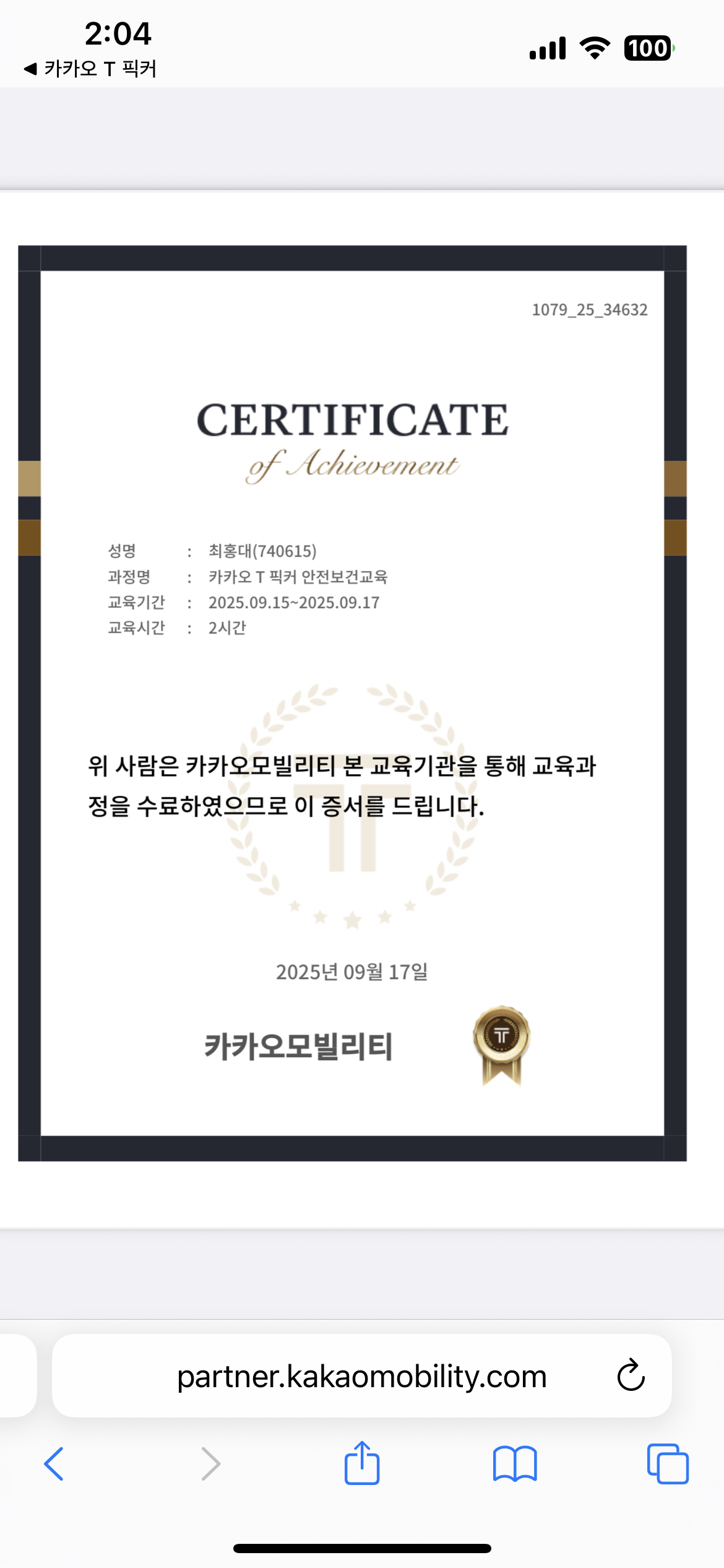 산업안전지도사와 최근에 등록하고 교육을 받은 카카오T픽커