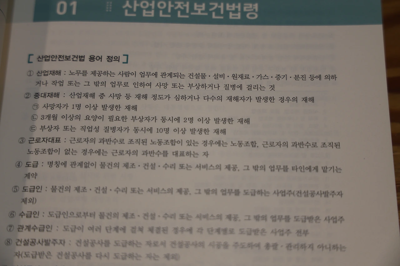 산업안전지도사는 말 그대로 산업안전과 관련된 다양한 정보와 법령, 내용을 담고 있다. 가장 먼저 나오는 내용이 산업안전보건법령이다. 일부 계산식도 필요하지만 이해하는 데 있어서는 그다지 무리는 없다.