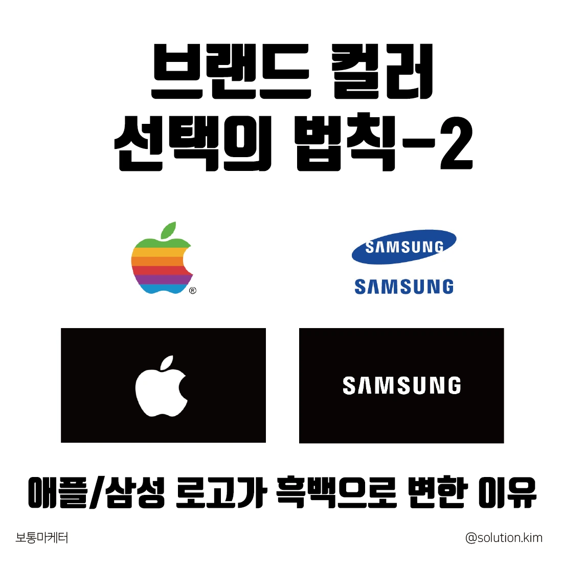하위 브랜드 뿐만 아니라 타 브랜드와의 콜라보 등 다양한 시도를 해야 하는 위치에서 브랜드의 컬러는 걸림돌이 될 수 있습니다. 삼성이 만든 Z플립과 애플이 만든 아이폰은 기업 브랜드와 하위 브랜드가 나란히 열거 되는 과정에서 기존에 확보된 인지도를 활용해야 합니다. 여기에서 파란색과 무지개 컬러가 눈에 띄면 하위 브랜드는 묻히게 되는 거죠. 이들이 블랙 등 무채색을 선택하고 있는 이유입니다.