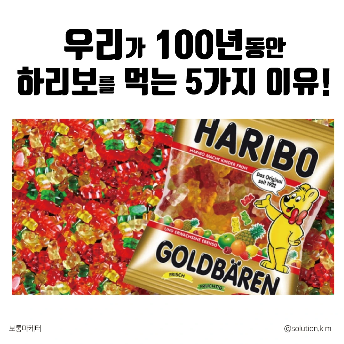 브랜드 전략가 데이비드 아커는 상징성이야 말로 고객에게 브랜드를 강하게 인식시키는 가장 쉬운 방법이라고 했습니다. 하리보는 골드베렌을 통해 젤리하면 곰(하리보)를 상징으로 활용했죠.