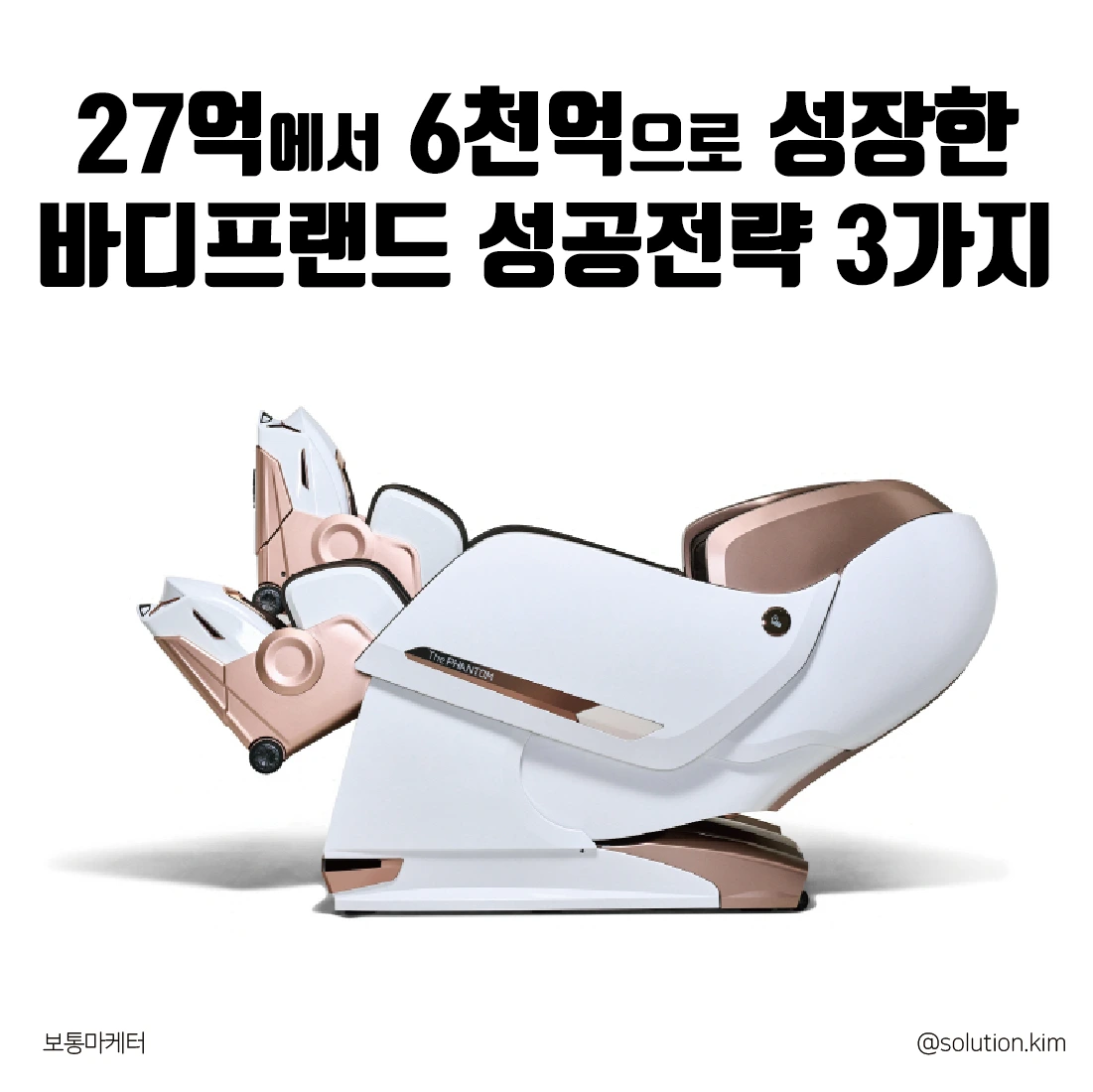 저관여 브랜드의 경우 이미지와 콘텐츠를 통해서 고객의 선택을 받을 수 있지만 안마의자와 같이 고관여 제품의 경우 속성에 대한 전략이 무엇보다 중요합니다. 만약 고관여 브랜드를 운영 중이라면 바디프랜드의 사례가 좋은 공부가 될 거 같습니다.