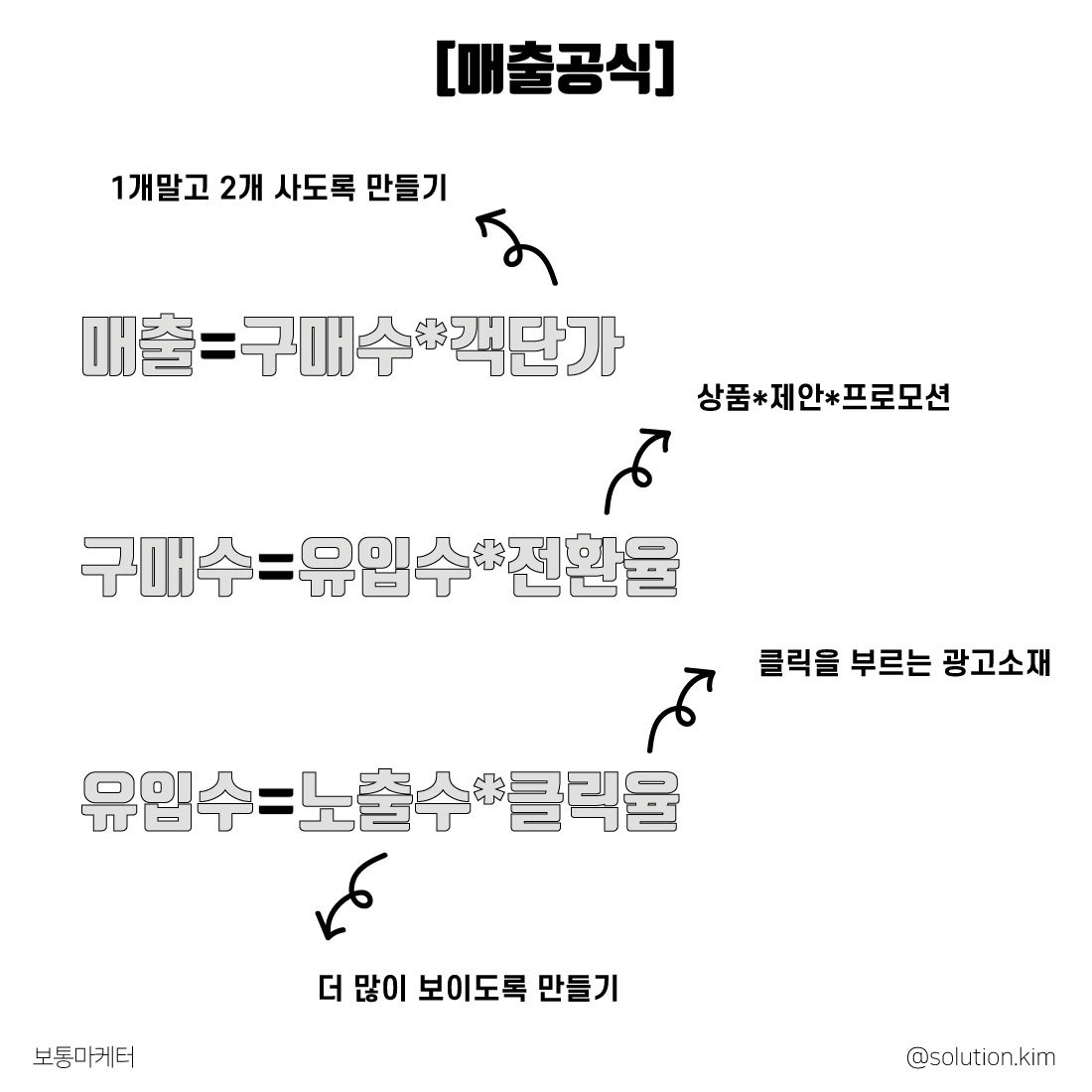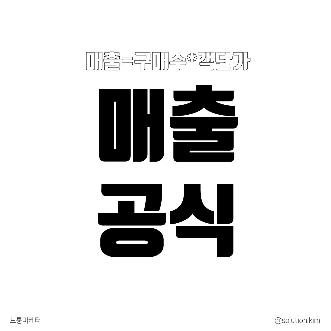 매출공식은 꼭 외우셔야 합니다. 외우는 걸로 끝내지 마시고 매출공식의 구성과 각 단계별로 어떤 의미와 대응이 가능한지 함께 알아두시면 도움이 될 겁니다.