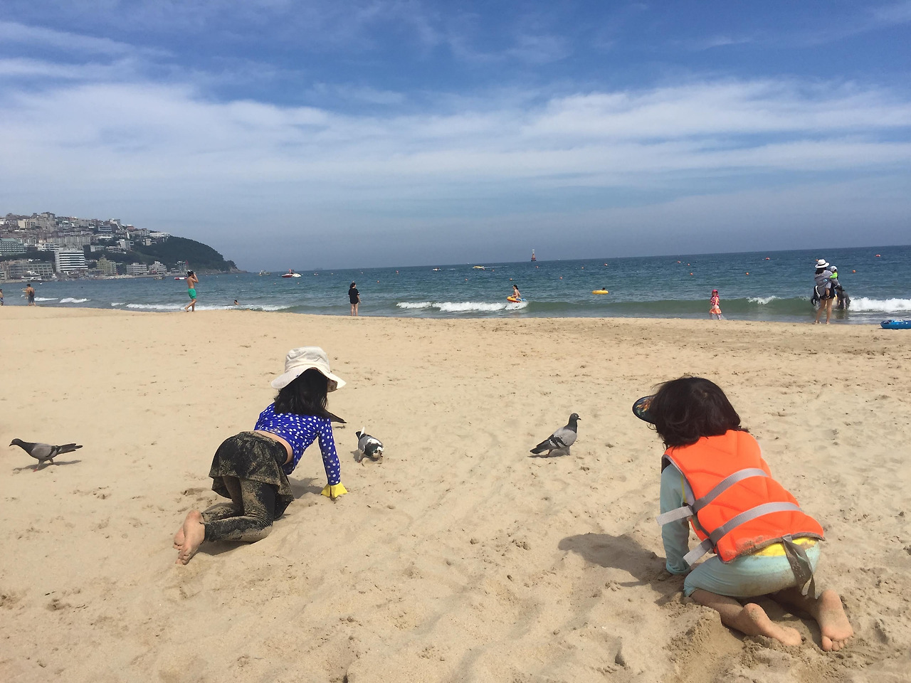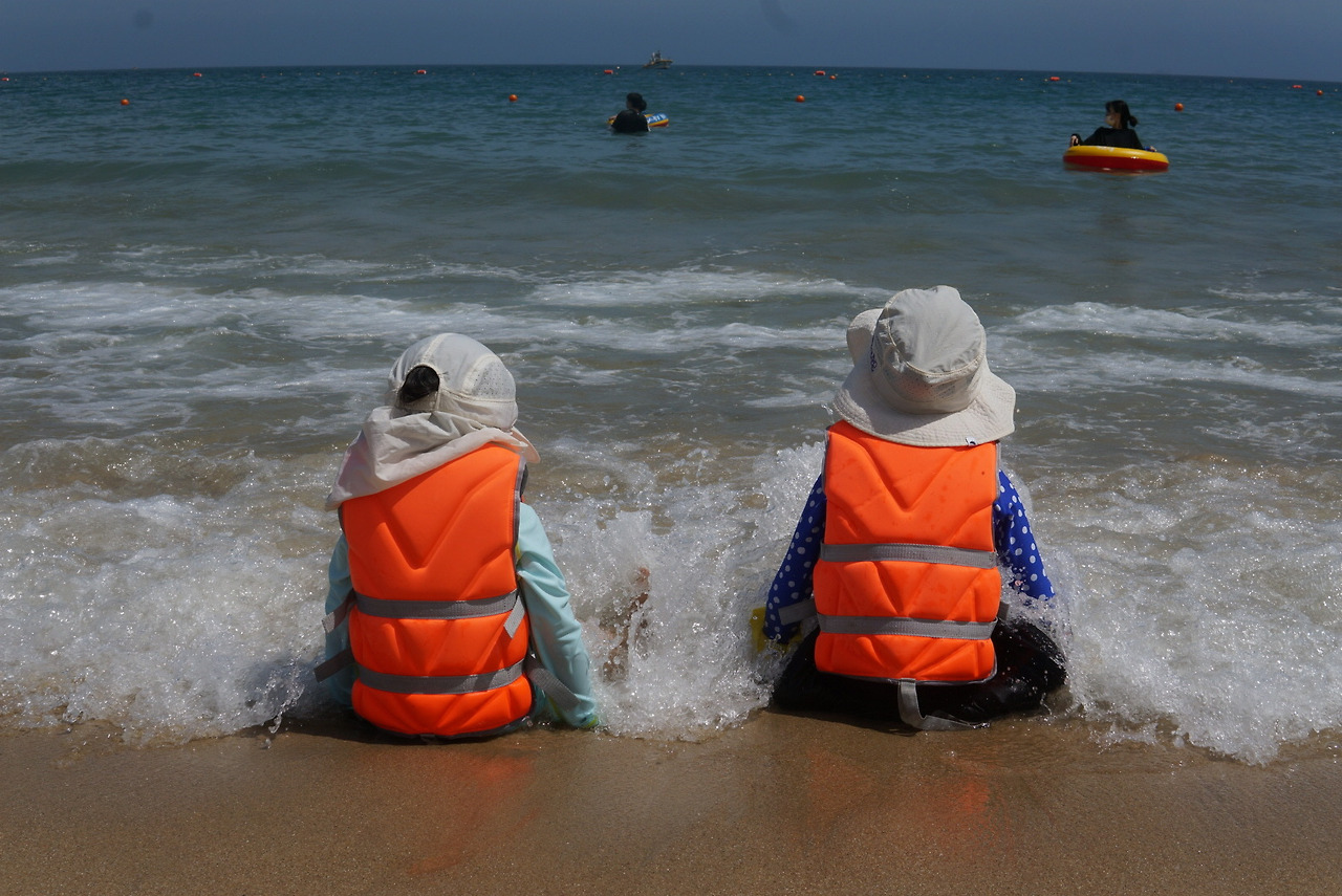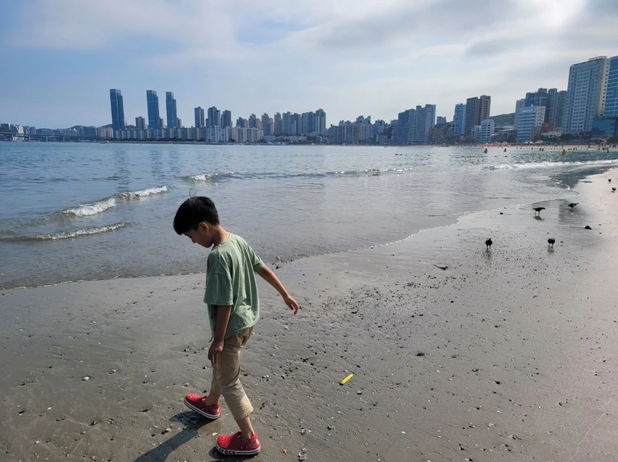 어이없지만 아직도 못 들어가 봤습니다. 해운대에 사는 친정 가족들 역시 부산 바다를 보기만 하지 좀처럼 들어가지 않습니다. 아이들이 태어나 여름마다 해운대나 송정 바다에 데려갔지만, 어쩌다 보니 엄마 역할만 하느라 정신이 없어 아이들만 파도에 앉혀두고 저는 사진만 찍고 있었네요.
