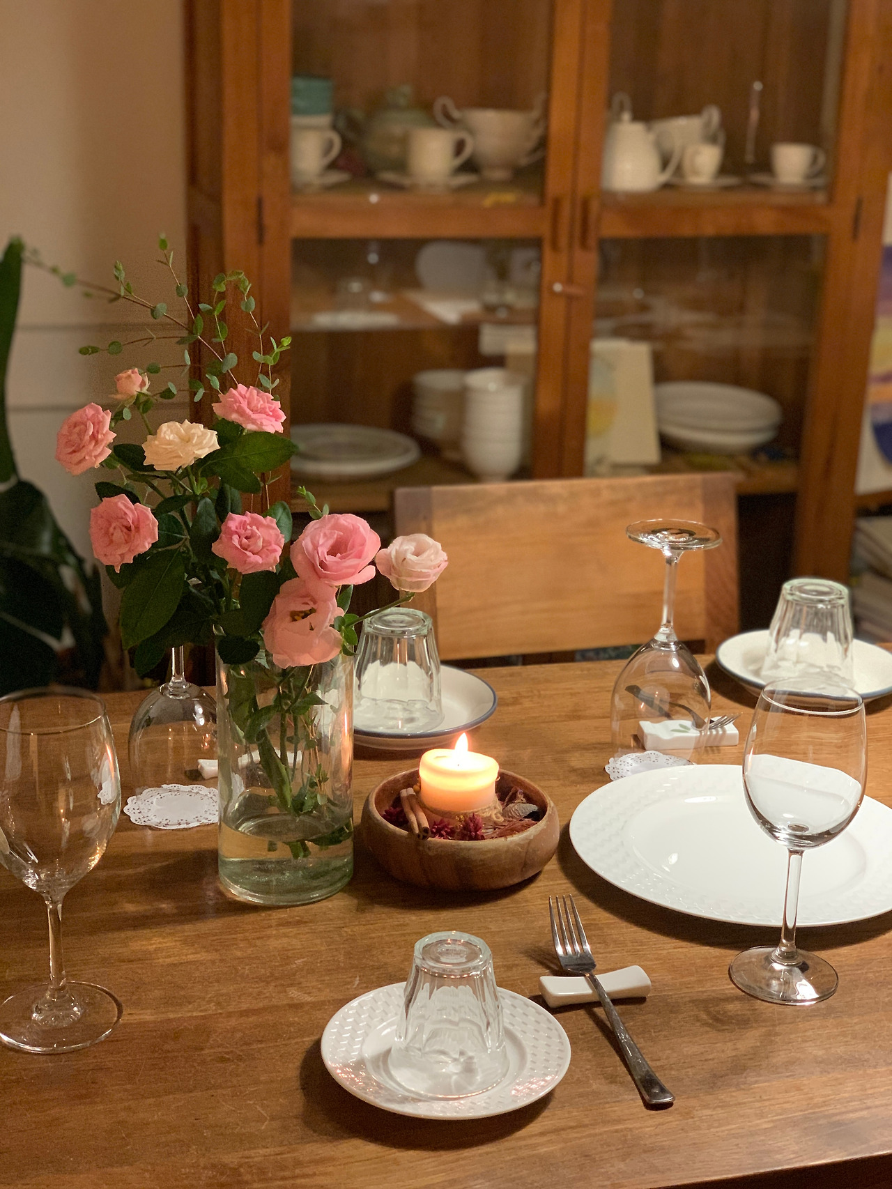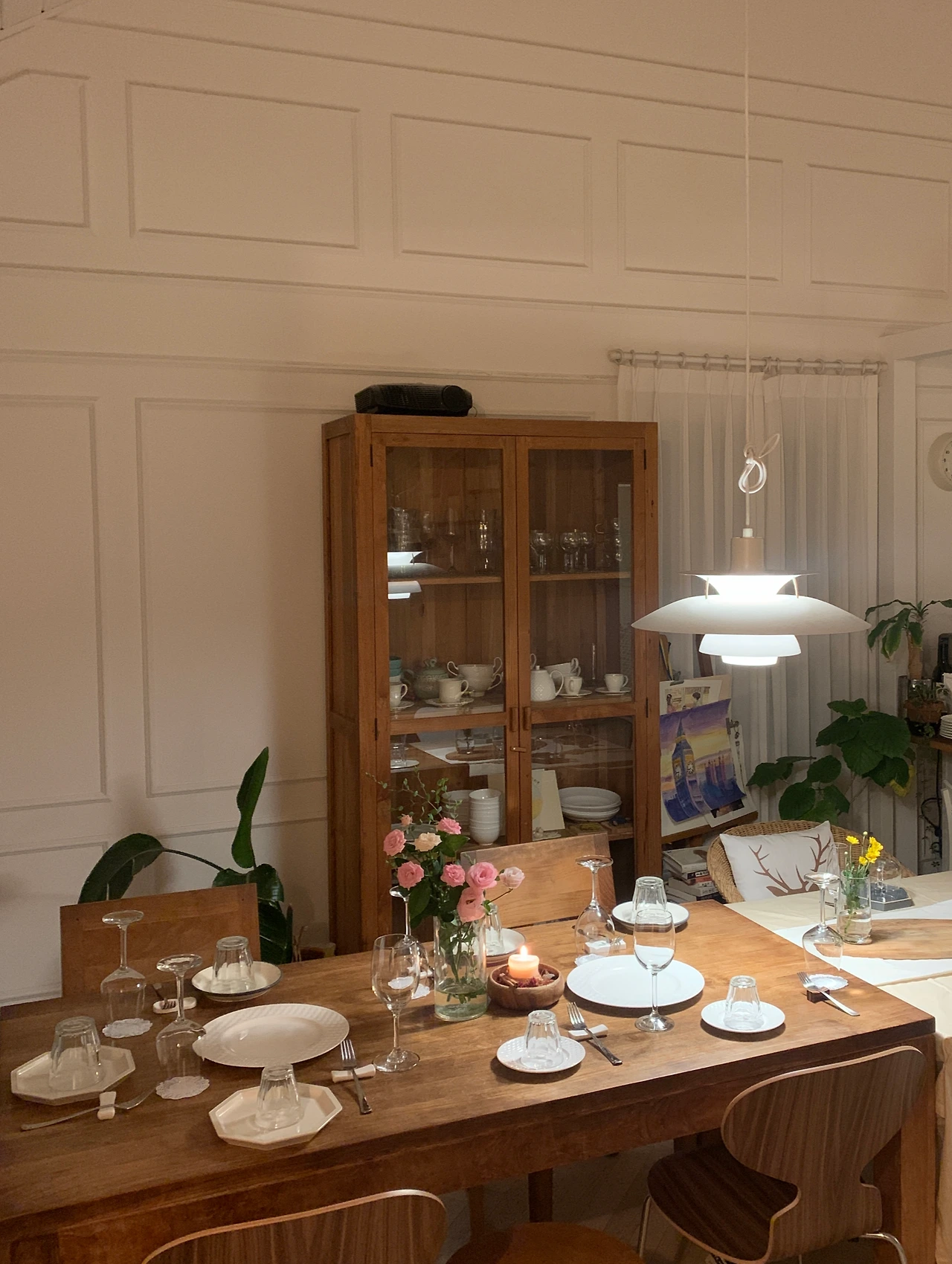 어젯밤 저는 집에 있는 의자를 모으고 테이블을 붙여서 자리를 만든 후 상상 속 밤의 데이트를 했습니다. 대문을 열고 들어올 손님들의 환한 미소들을 하나하나 떠올려보며 그들이 마실 잔들을 이쪽저쪽에 놓고 테이블 세팅 놀이를 했습니다. 아무도 시키지 않았지만 혼자 꺼내 줄을 맞추어 보는 한밤중의 저의 놀이입니다.