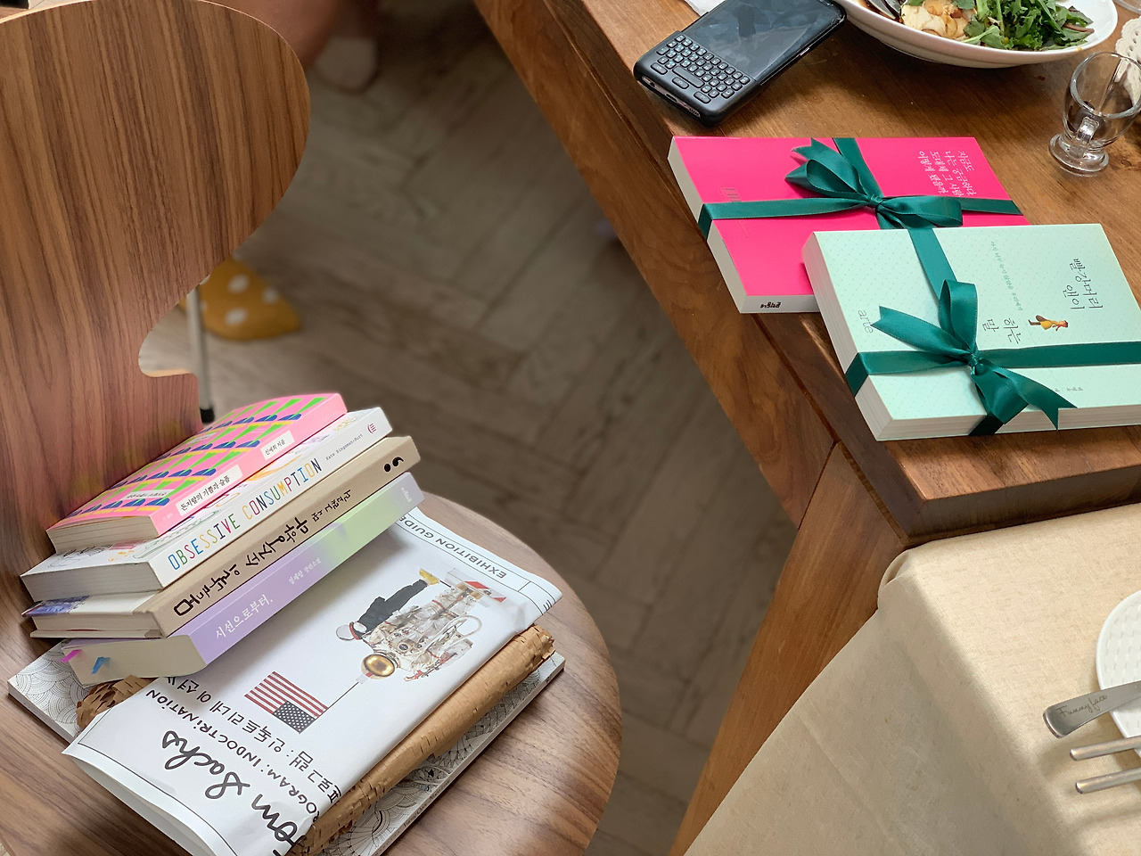 그리고 오늘 아침, 집으로 와주신 글방의 친구들과 함께한 모임은 제가 상상한 그 모습 그대로, 아니 그 이상으로 즐겁고 행복했습니다. 우리는 일 년을 각자의 방에서 혼자 책을 읽고 혼자 쓴 글을 온라인에서 함께 나눈 사이입니다. 서로의 글 아래 답글로 다정한 편지를 보내던 우리가 이제 상대의 손때와 흔적이 묻은 책에 메모를 남기고 줄을 그으며 나의 흔적을 더해 다음 친구에게 여행을 보냅니다.