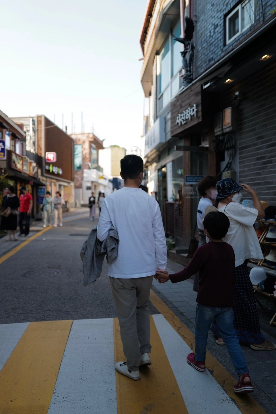 아들의 작은 손을 따뜻하게 잡고 아이 걸음에 맞추어 천천히 걷고 있는 그 속도가 아버지의 뒷모습이다.