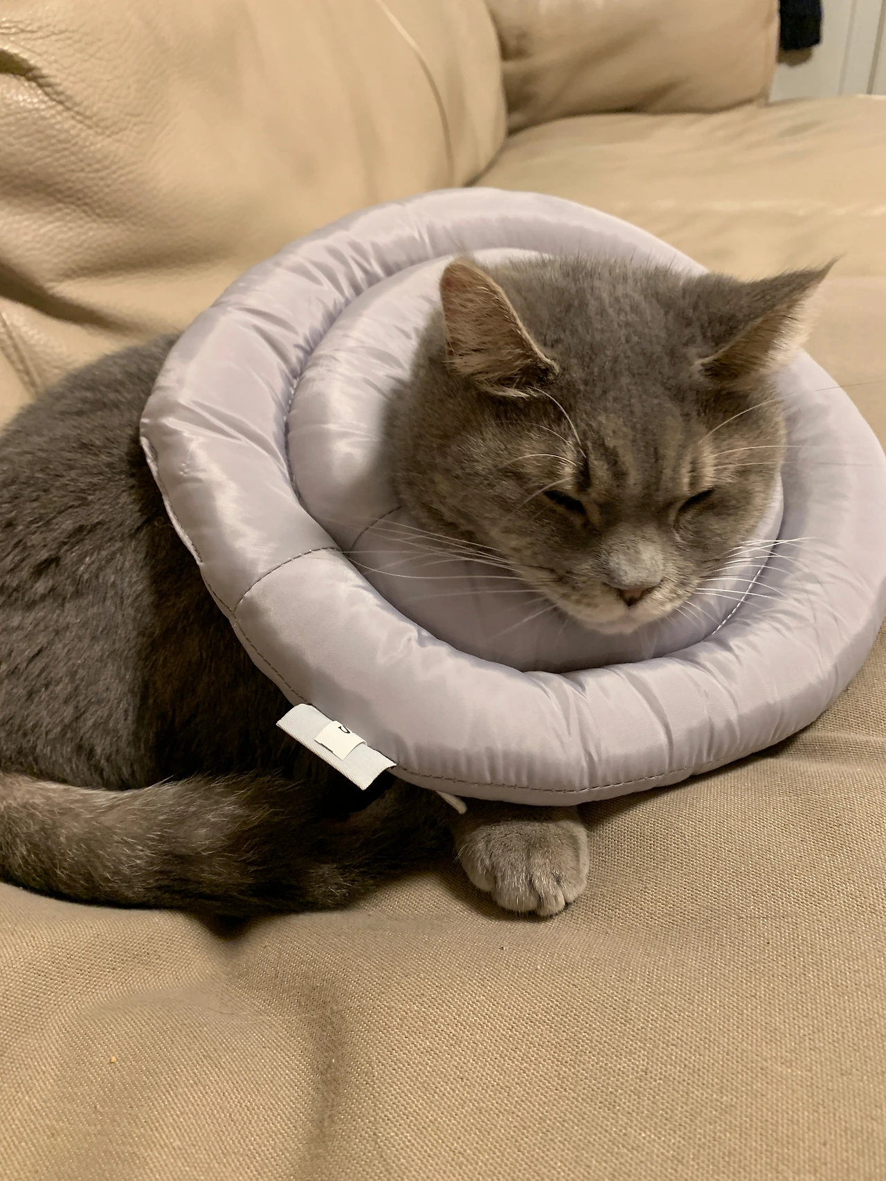 한참이 지나서 민트는 턱과 꼬리에 상처를 입고 돌아왔습니다. 여행을 떠나야 했던 저희는 결국 상처 소독을 위해 민트를 동물병원에 맡기는 일도,