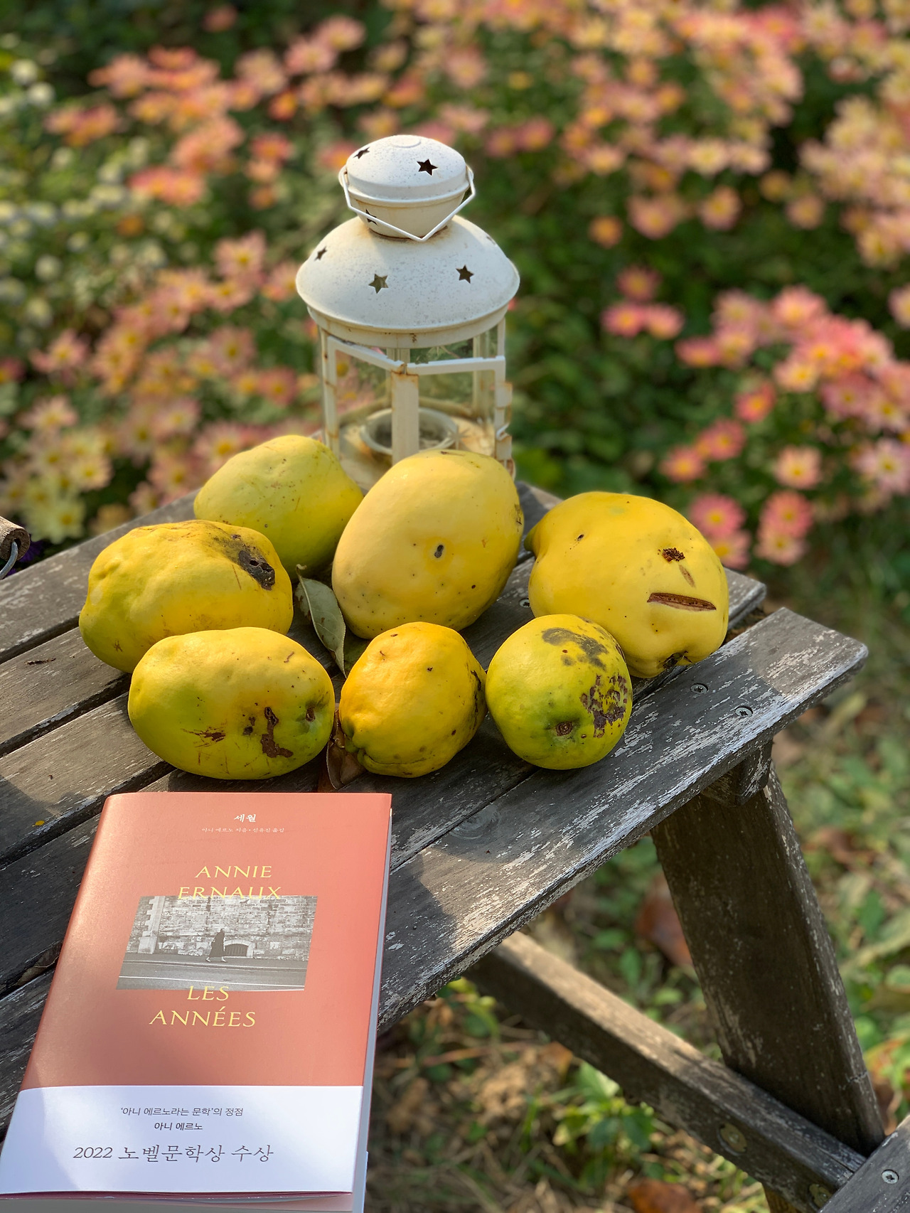 아무 곳에나 떨어져 있던 모과는 고양이를 살펴주러 오셨던 이웃들이 주워주셨는지 테이블 위에 올려져 있었고 오렌지 구절초는 휘어지고 늘어진 가지로도 아름다운 빛깔로 흐드러지게 피어있었다.