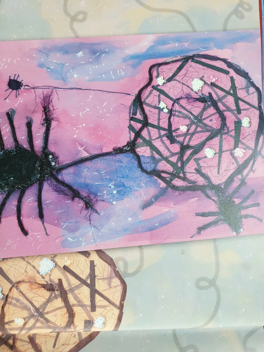 엄마는 조금 더 아래에서 집을 짓고 있을게. 언제라도 너의 먹이가 붙었다 떨어지면 그 밑의 엄마 집에 붙어있을 테니 걱정 말고 더 용감하게 나무 위로 올라가 집을 지어보렴~ 그러다 네가 가장 멋진 나무를 발견하게 되면 거기서 너의 작품을 세상에 자랑스럽게 전시해 보는 것은 어떠니? 우리 거미들은 시간과 공간을 실로 그리는 자연속 가장 멋진 화가들이란다.