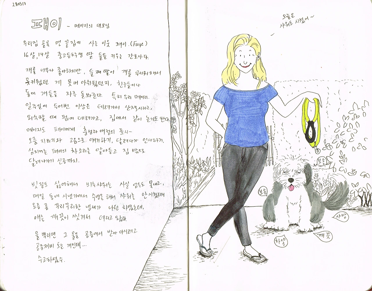 우리 옆 옆 옆 옆집에 사는 가족들은 우리 집 개를 종종 빌려가곤 한다. 같이 산책도 하고, 맥주 한 잔 하러 외출할 때도 데려가고, 개가 있는 다른 친구들과 만날 때도 데리고 나가고, 그냥 집에서 쉴 때도 옆에 앉혀 놓고 같이 놀고 그런다. 뭐랄까, 대모-대부님 같달까.