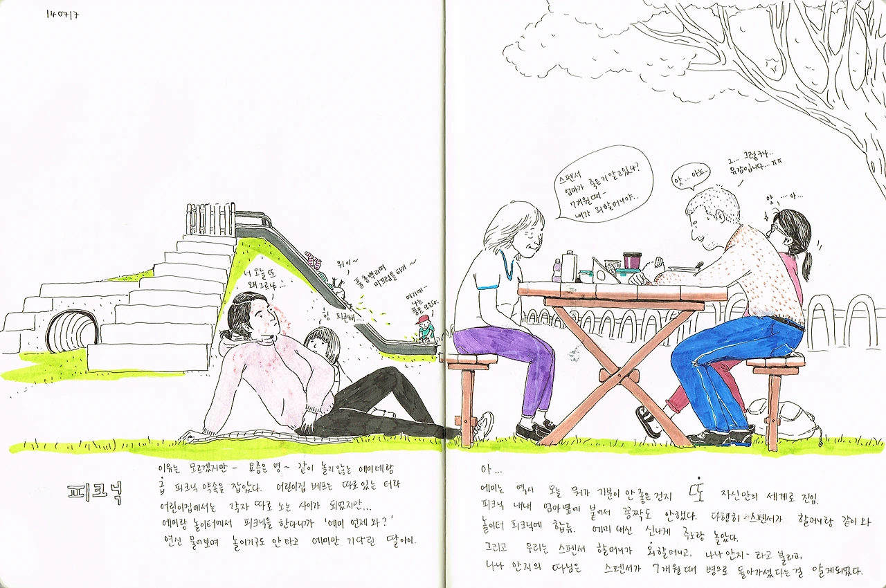 나는 아이랑 같이 책을 읽는 게 재미있다. 사실 내가 좋아하는 이야기는 더 실감 나게 읽어 주는 편협한 자세. 책에 나오는 인물들을 가지고 마음대로 이야기를 만들어 덧붙이는 지금 딸아이의 나이가 딱 좋은 것 같다. 너무 귀엽다. 아이 구경하는 맛에 책 읽는 게 즐겁다.